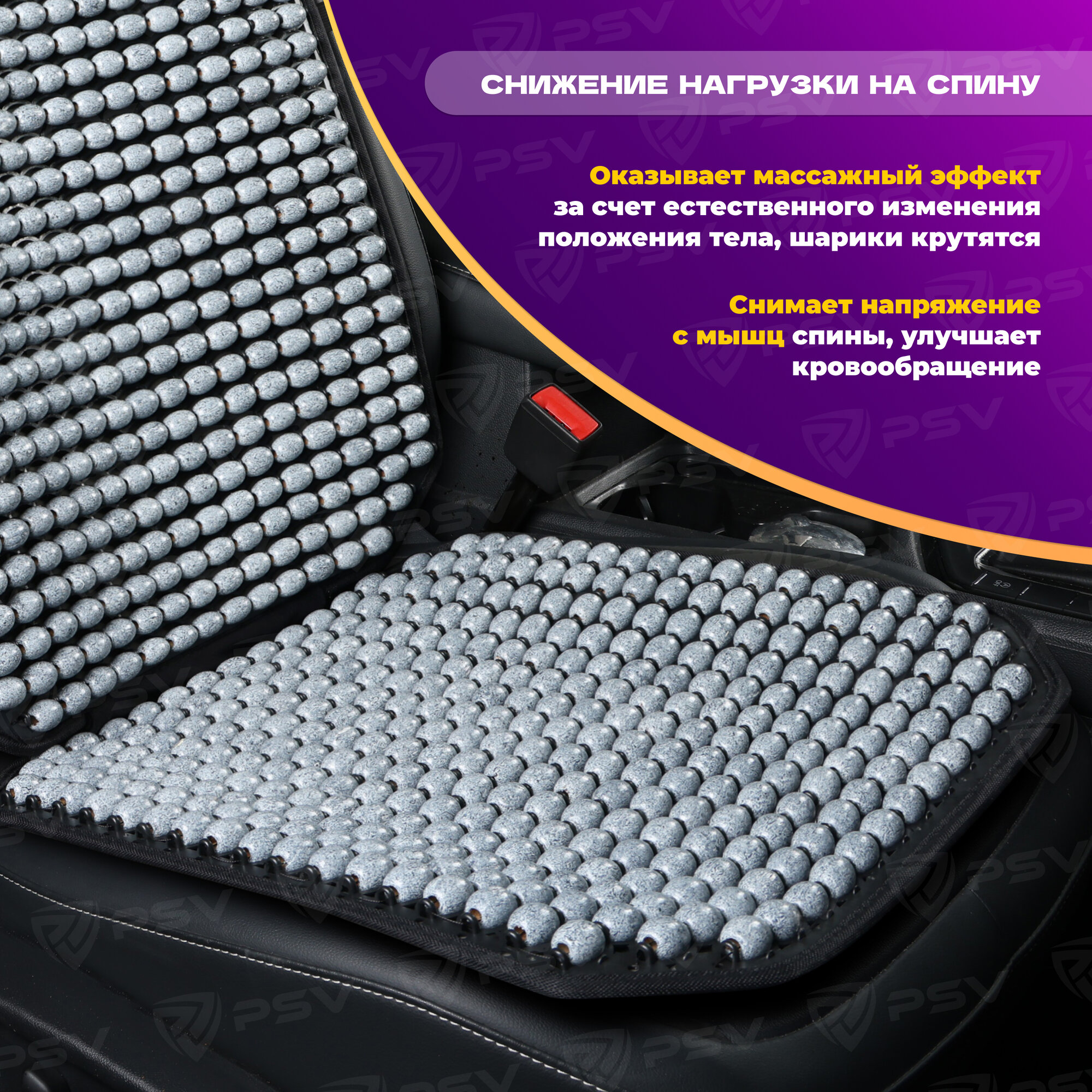 PSV 137158 Накидка на сиденье массажная деревянные шарики PSV 2010 большая с поддержкой черная