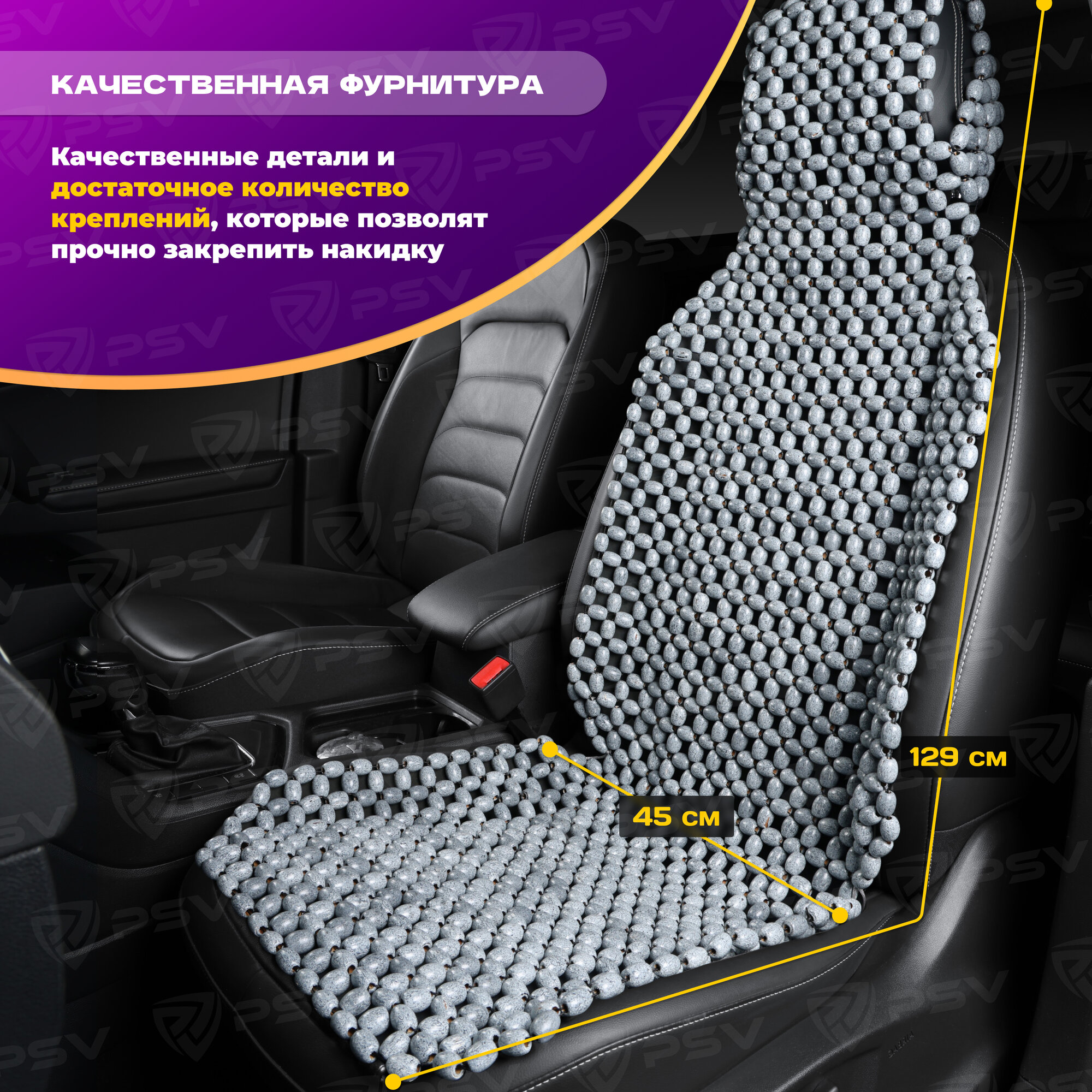 PSV 137158 Накидка на сиденье массажная деревянные шарики PSV 2010 большая с поддержкой черная