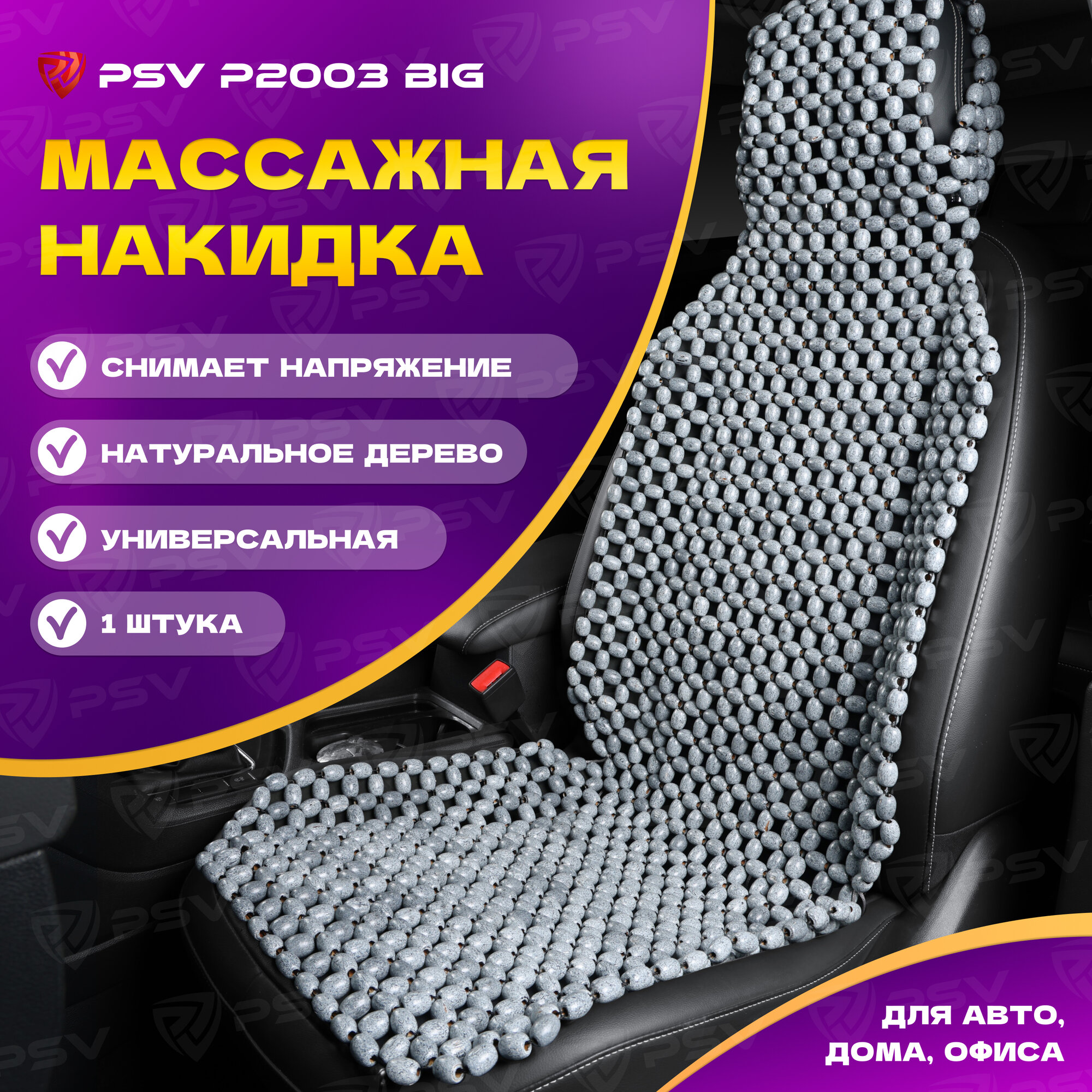 Купить Накидка массажная деревянные косточки PSV P2003 BIG (большая) (Серый), 1 шт. 137167