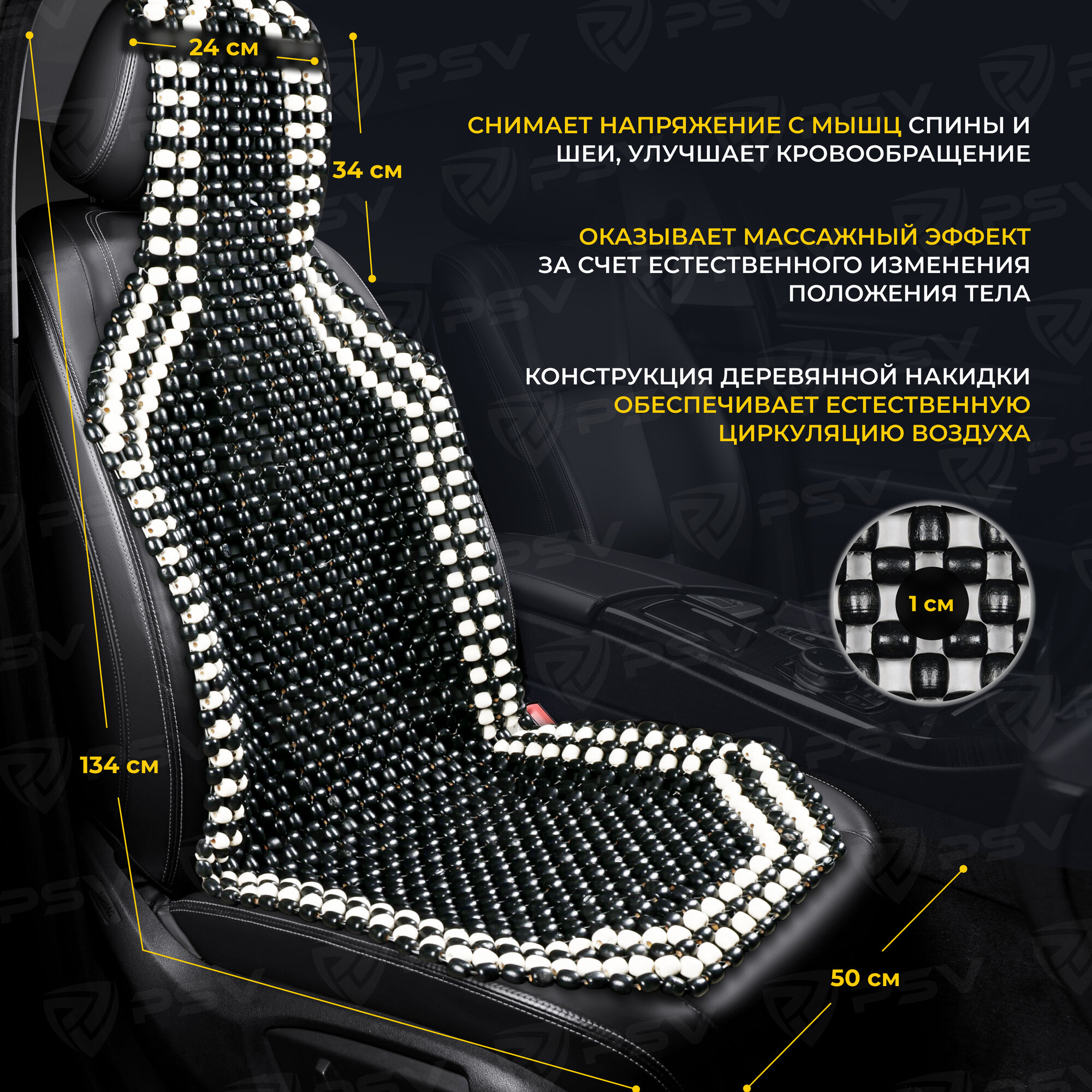 PSV 137158 Накидка на сиденье массажная деревянные шарики PSV 2010 большая с поддержкой черная