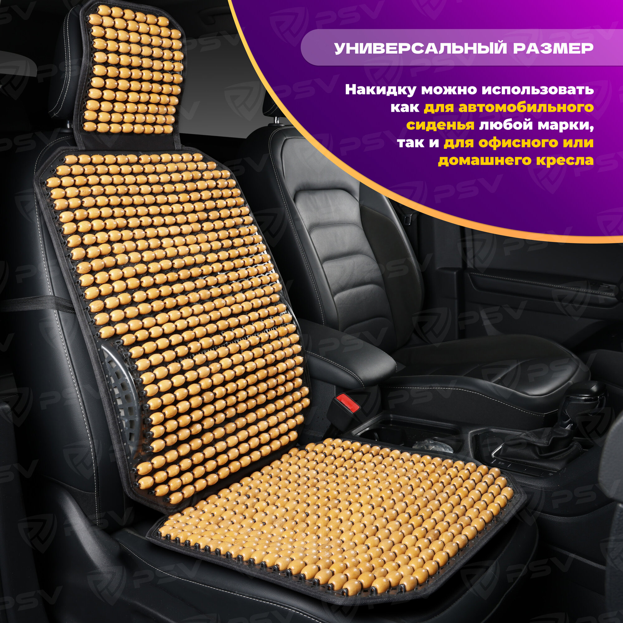 PSV 137158 Накидка на сиденье массажная деревянные шарики PSV 2010 большая с поддержкой черная