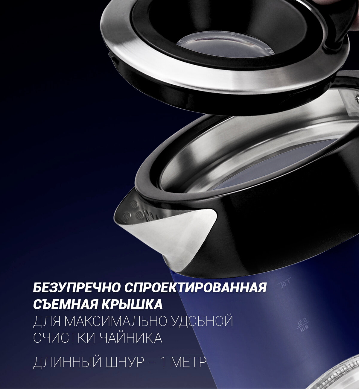 | Плюсы: | Не нужно снимать крышку, можно просто залить воду. Красивая подсветка. Быстро закипает |