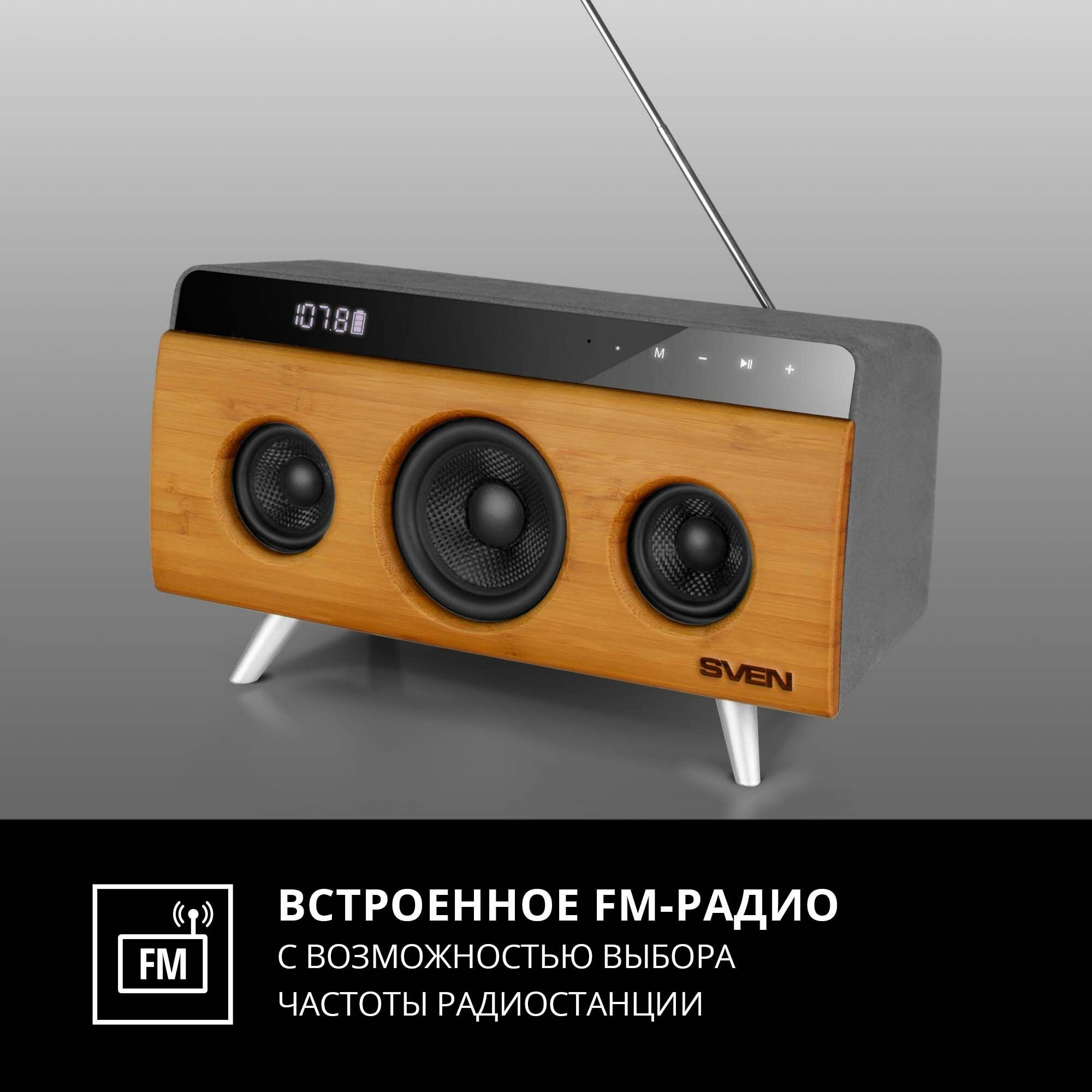 Купить Колонка портативная Sven HA-930, 2.0, 30 Вт, Bluetooth, FM, USB, LED-дисплей, бамбук