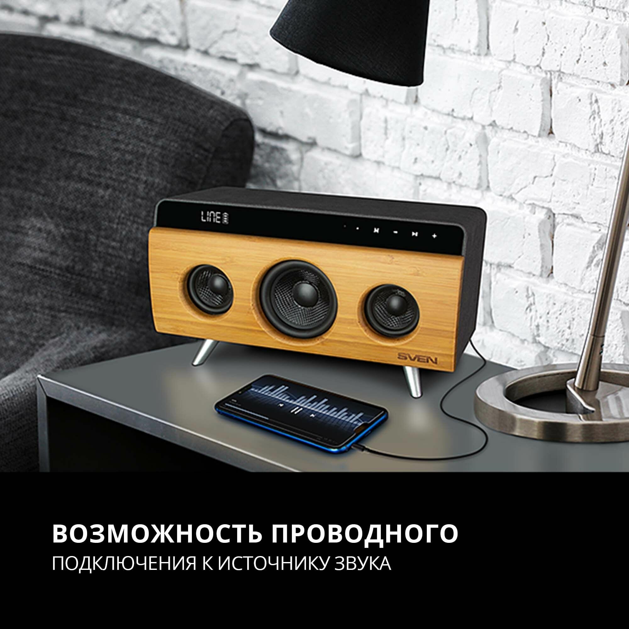 СохранитьКолонка портативная Sven HA-930, 2.0, 30 Вт, Bluetooth, FM, USB, LED-дисплей, бамбук интересное: