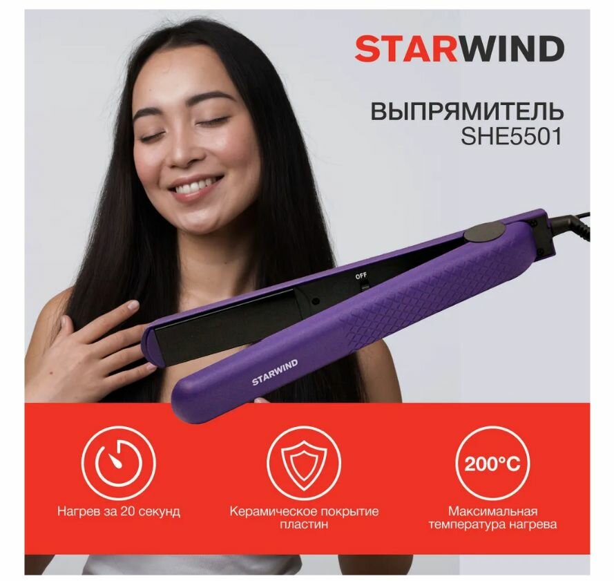 Выпрямитель SHE5501 25Вт фиолет. (макс.темп. 200С) | код 1115496 | STARWIND (1 шт.)