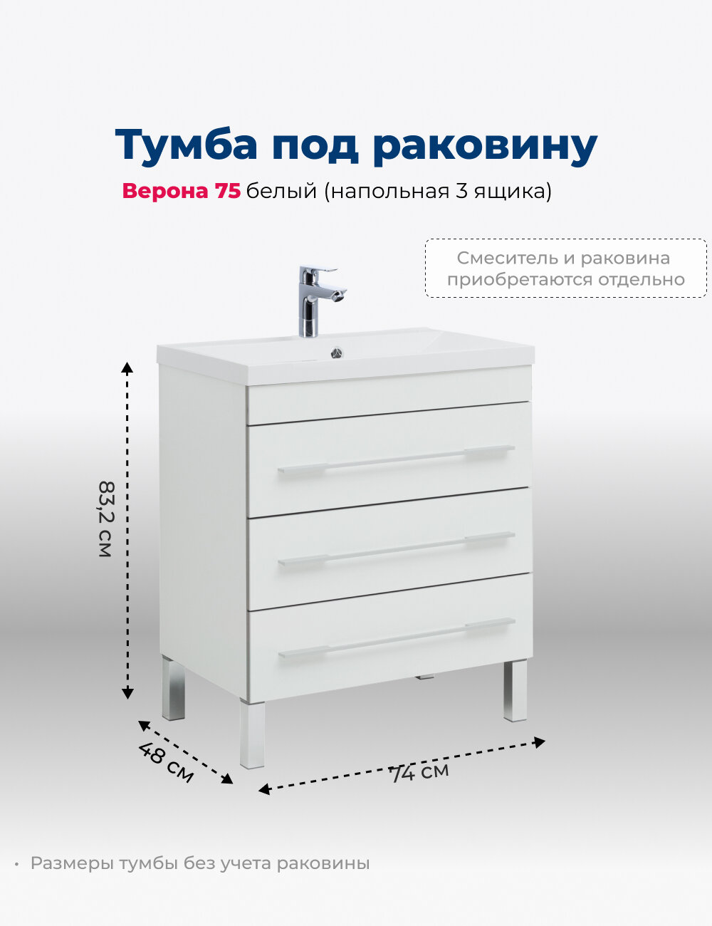 Тумба под раковину Aquanet Верона 75 белый (напольная 3 ящика) интересное: