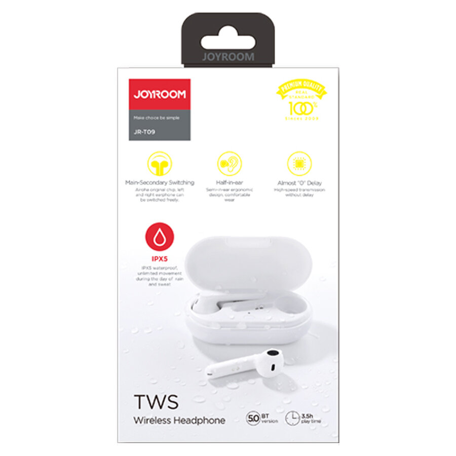 Беспроводные наушники JOYROOM JR-T09 TWS, Bluetooth, 35 мАч, белый, +Box 500мАч