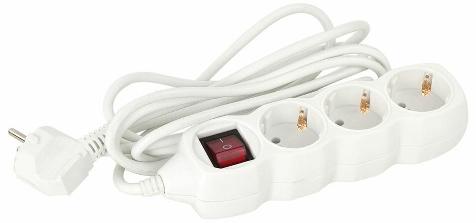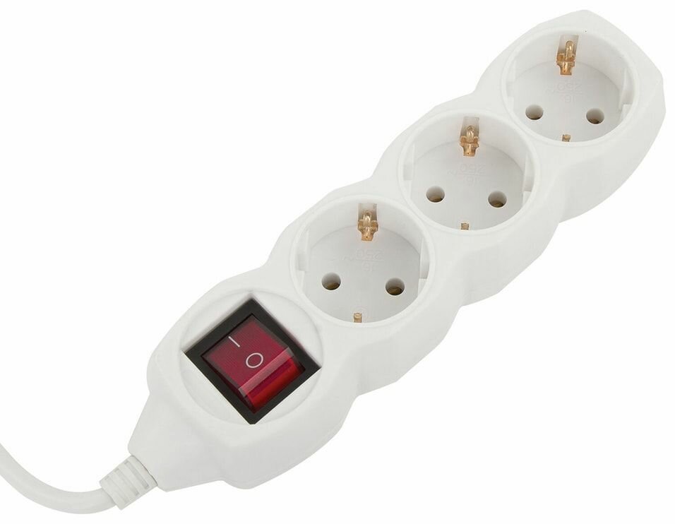Удлинитель сетевой SONNEN U-133GS, 3 розетки, c заземлением, выключатель, 10 А, 3 м, белый, 511434 (арт. 511434)