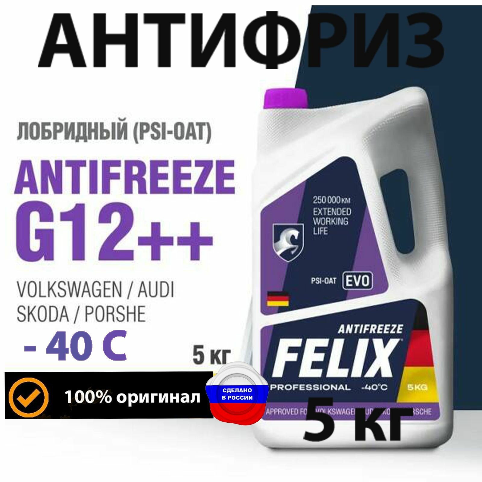 Антифриз FELIX "EVO" G12++, фиолетовый, -40С, 1 кг, для Volkswagen, Audi, Skoda, Porsche