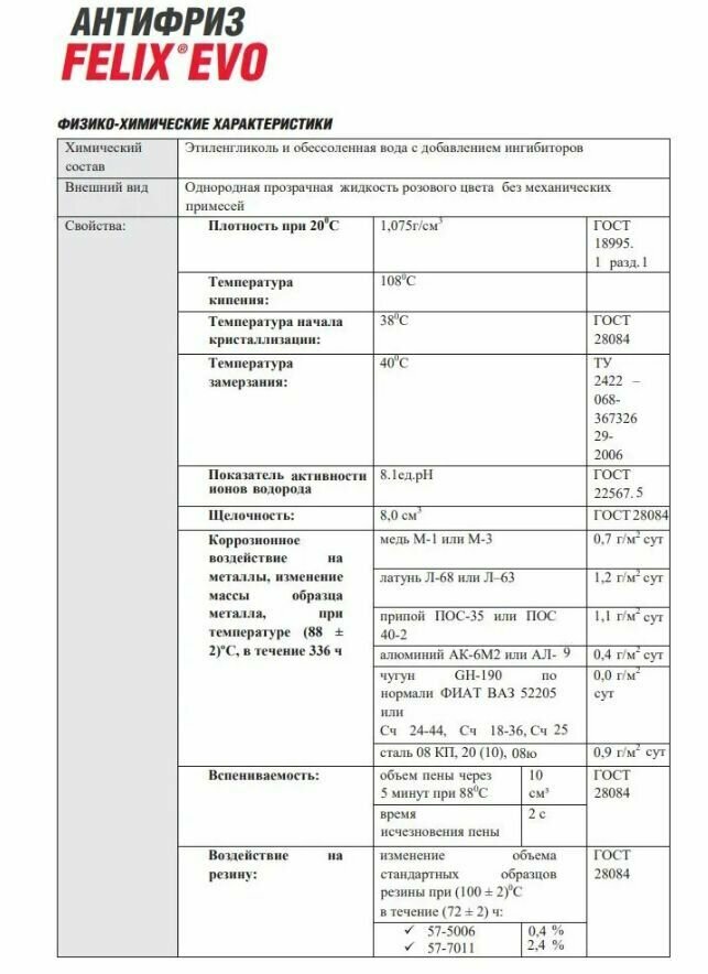 | Отзыв: | Нормальный антифриз, работает. Накатал 60 тыщ на шкоде, на ТО залил опять Феликс. С системой охлаждения все в порядке. Нареканий никаких нет, в любое время года катаюсь, проблем нет. |