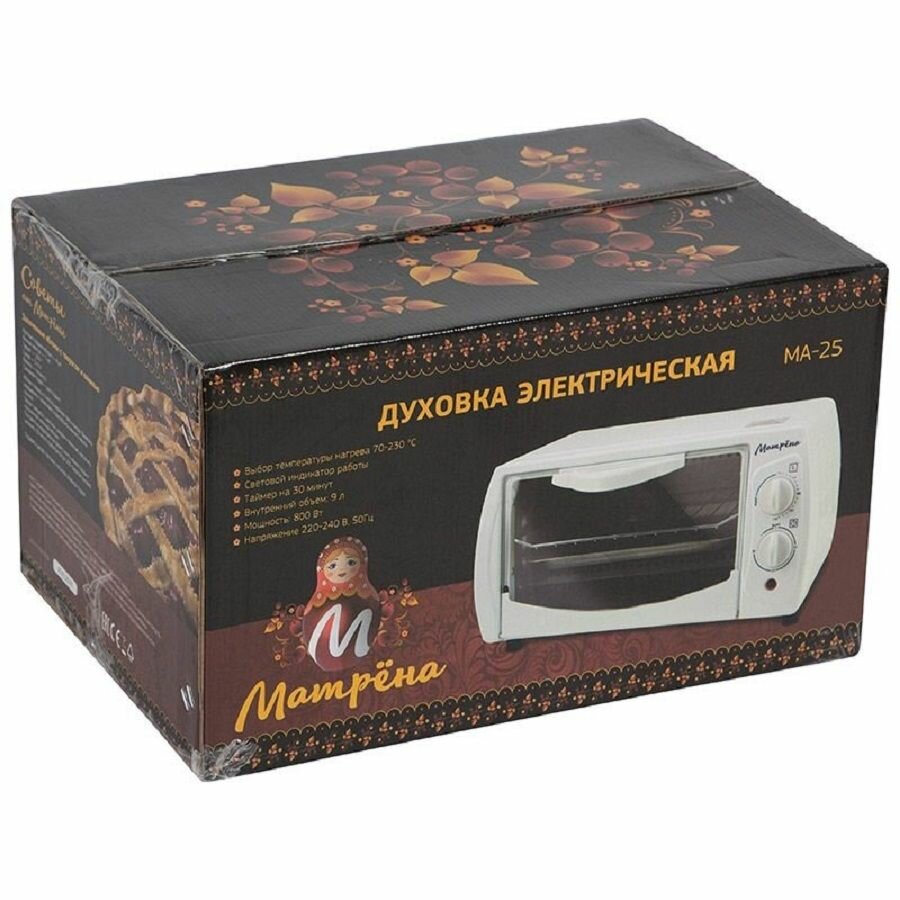 Электрическая духовка Матрена МА-25 белая Внутренний объём 9 л, термостат с диапазоном температур 7 .
