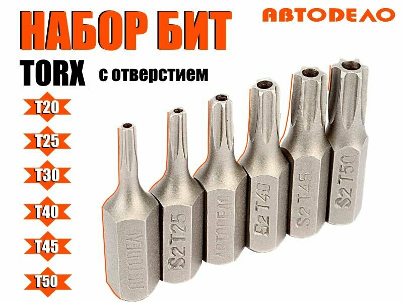 Набор Бит Torx 6 Пр. Т20-50 L=30 Мм С Отверстием Автодело АвтоDело арт. 40631