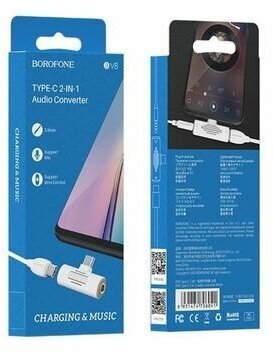Переходник BOROFONE BV8 Type-C 2-in-1, Type-C - Jack 3.5/Type-C, 1.5А, белый