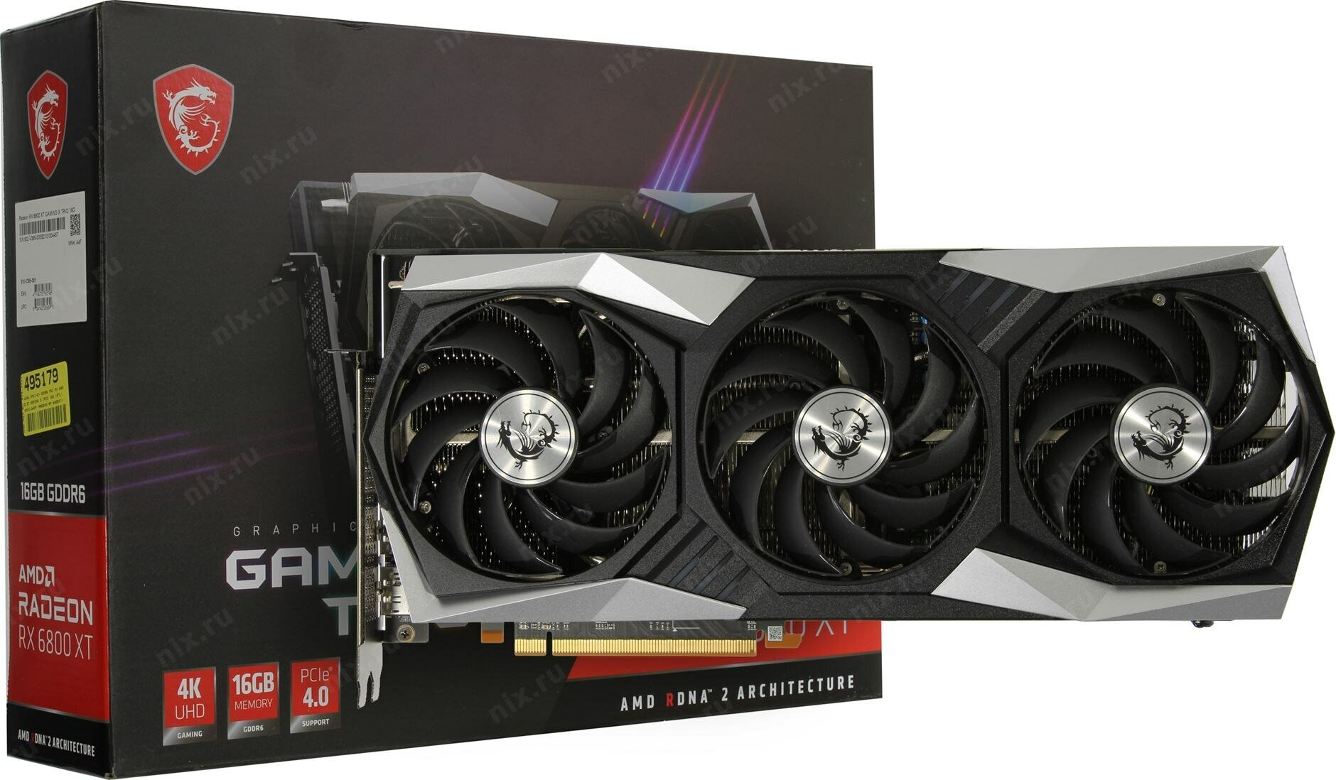 Видеокарта MSI RADEON RX 6800 XT, RX 6800 XT GAMING X TRIO 16G, 16Gb DDR6, 256bit, 1xHDMI/3xDP, RTL