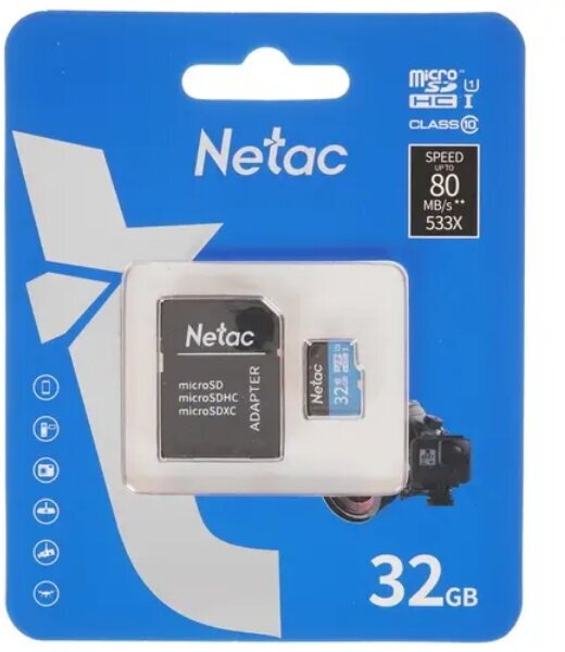 Карта памяти microSDHC UHS-I U1 NETAC P500 32 ГБ, 80 МБ/с, Class 10, NT02P500STN-032G-S, 1 шт., без адаптера