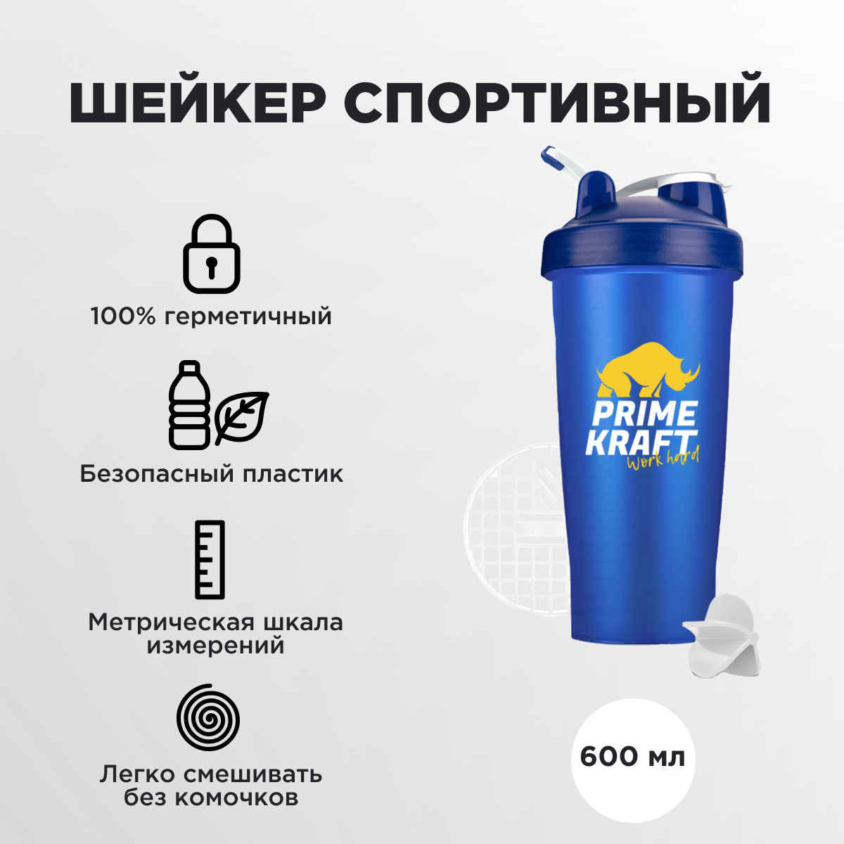 Шейкер PRIMEKRAFT 600 мл / для спортивного питания / для протеина / синий / мерная шкала