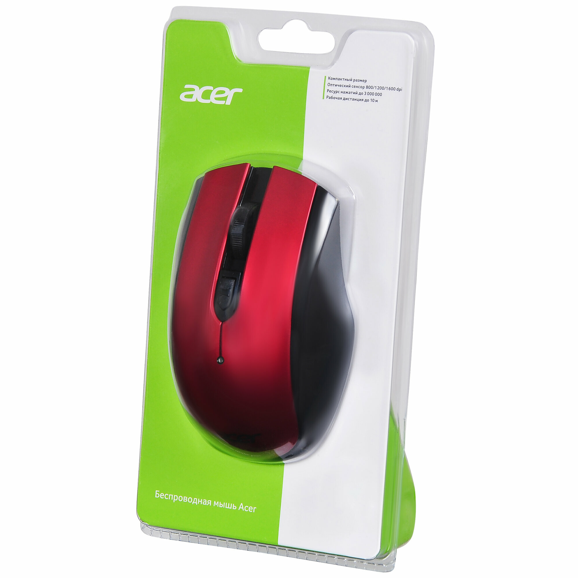 Мышь Acer OMR032, оптическая, беспроводная, USB, черный и красный [zl.mceee.009]