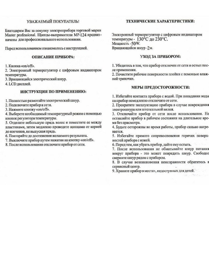 MASTER Professional, Утюжок MASTER Professional MP-124