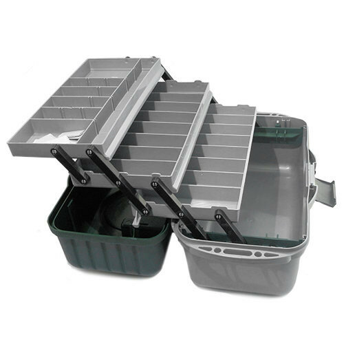 Ящик для рыбалки следопыт с 3-мя подъемными полками (PF-BU-T03) 40х20х22 см зеленый/серый