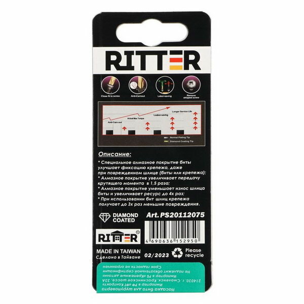 Ritter Бита Ritter Diamond PS20112075, PH2 х 70 мм, магнитная, алмазное покрытие, сталь S2, 2 шт.