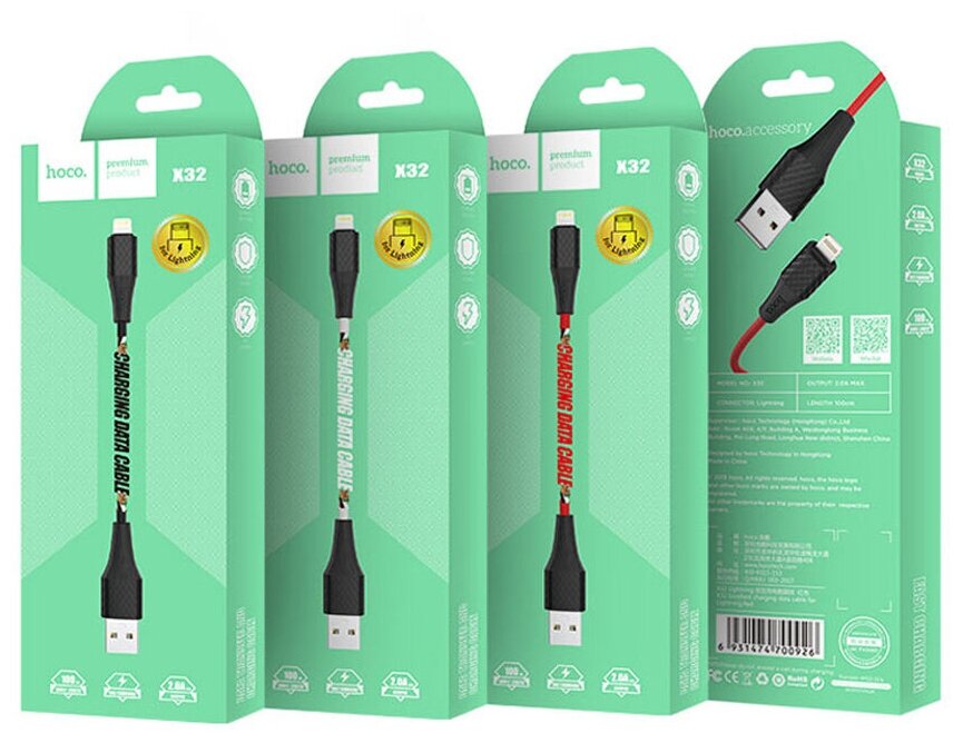 Кабель USB HOCO X32 Excellent USB - Lightning, 2А, 1 м, черный