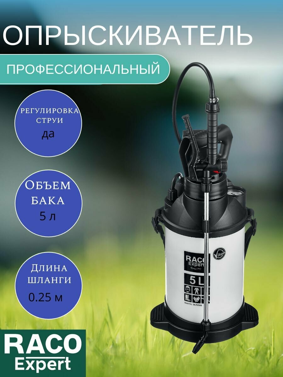 RACO Pro 500 профессиональный опрыскиватель 5 л, для работы с агрессивными химикатами, переносной