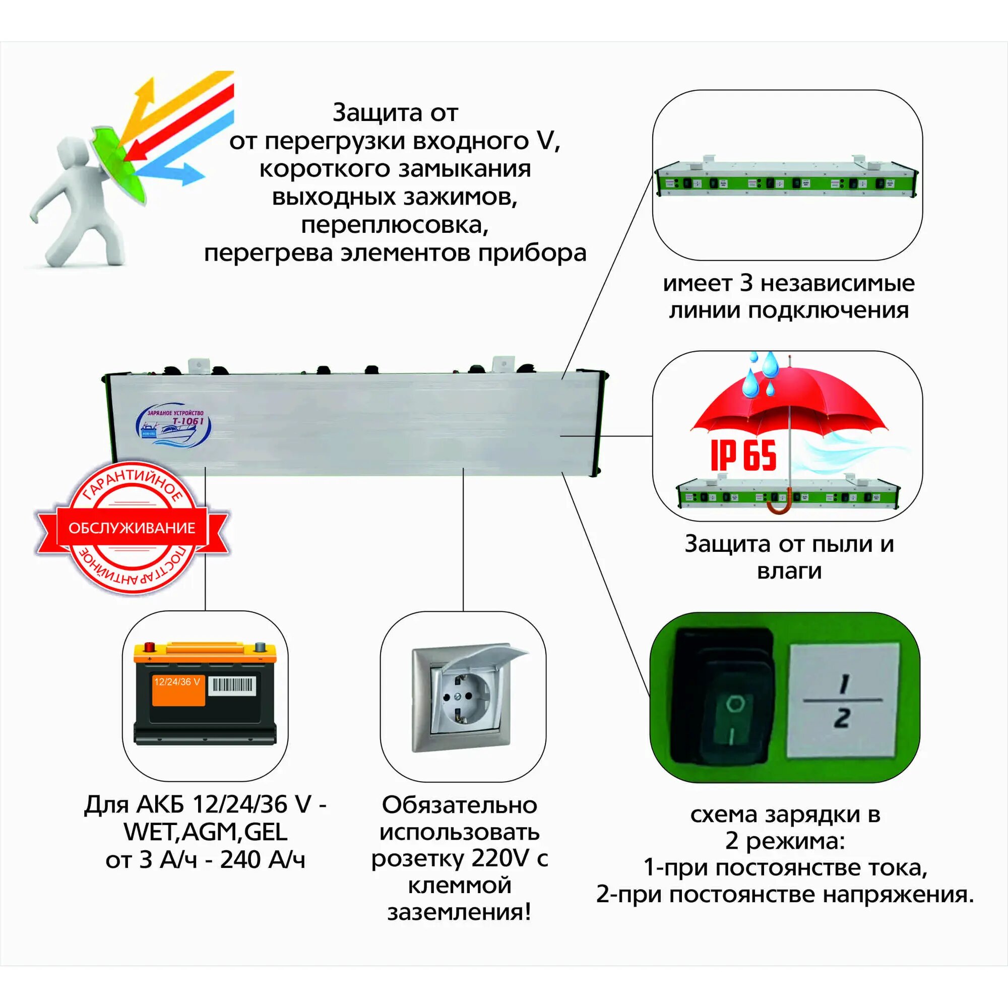 | Функции | подходит для AGM/GEL аккумуляторов |