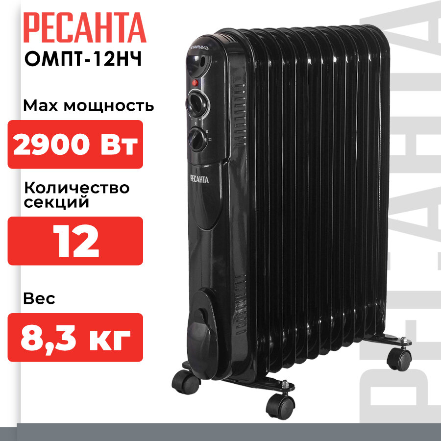 Масляный радиатор РЕСАНТА ОМПТ-12НЧ, черный