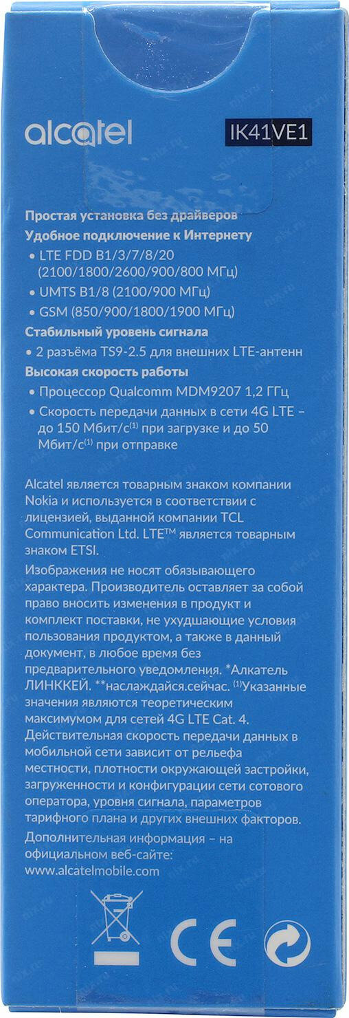 Купить Модем Alcatel Link Key IK41VE1 2G/3G/4G, внешний, черный [ik41ve1-2aalru1]