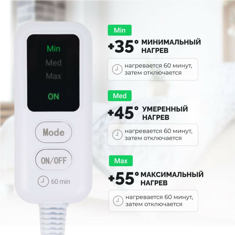 Электрогрелка EcoSapiens Flisa, грелка электрическая для ног и тела, флисовая, 40х50 см