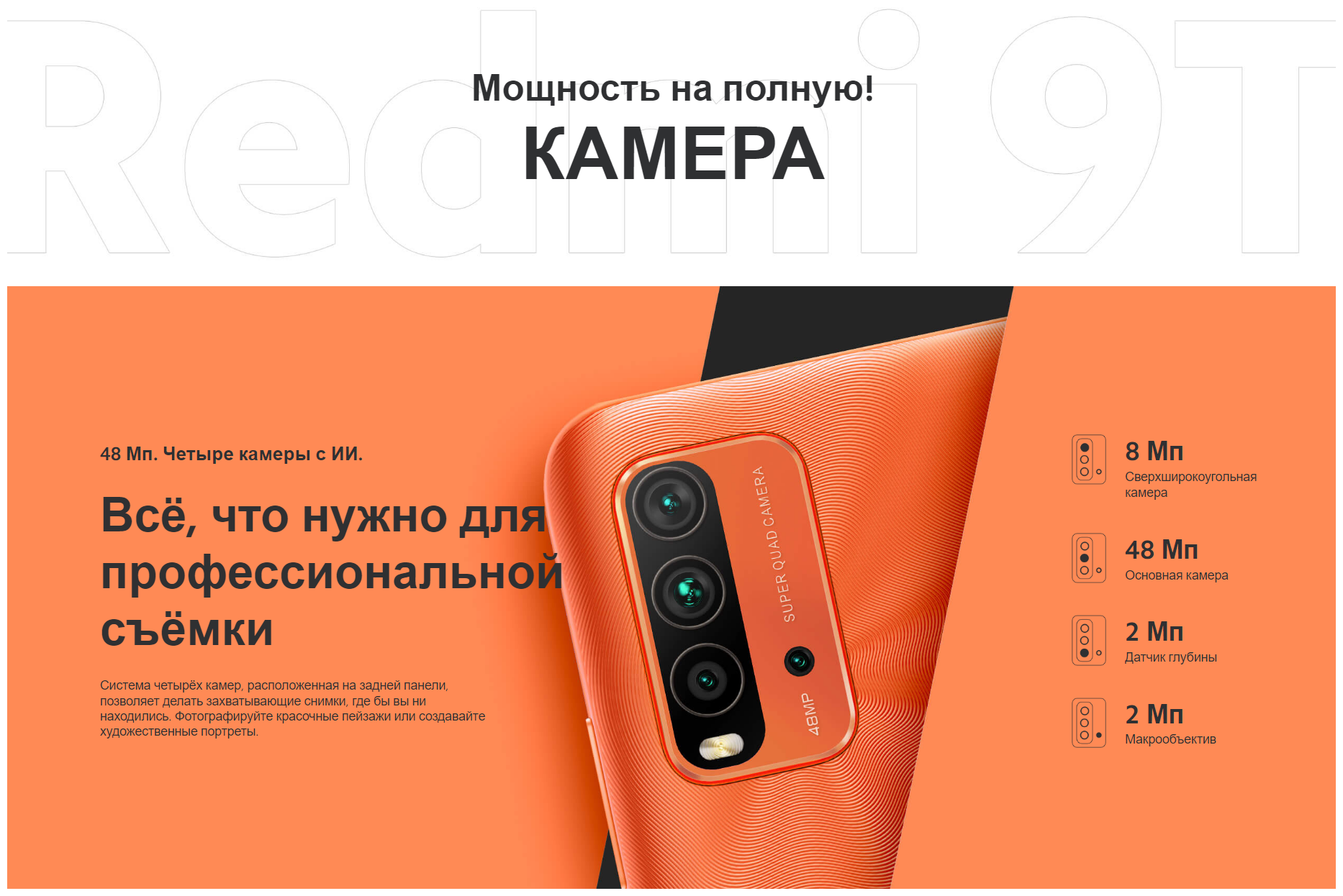 Смартфон Xiaomi Redmi 9T 4 ГБ 128 ГБ, 6000 мАч, оранжевый рассвет