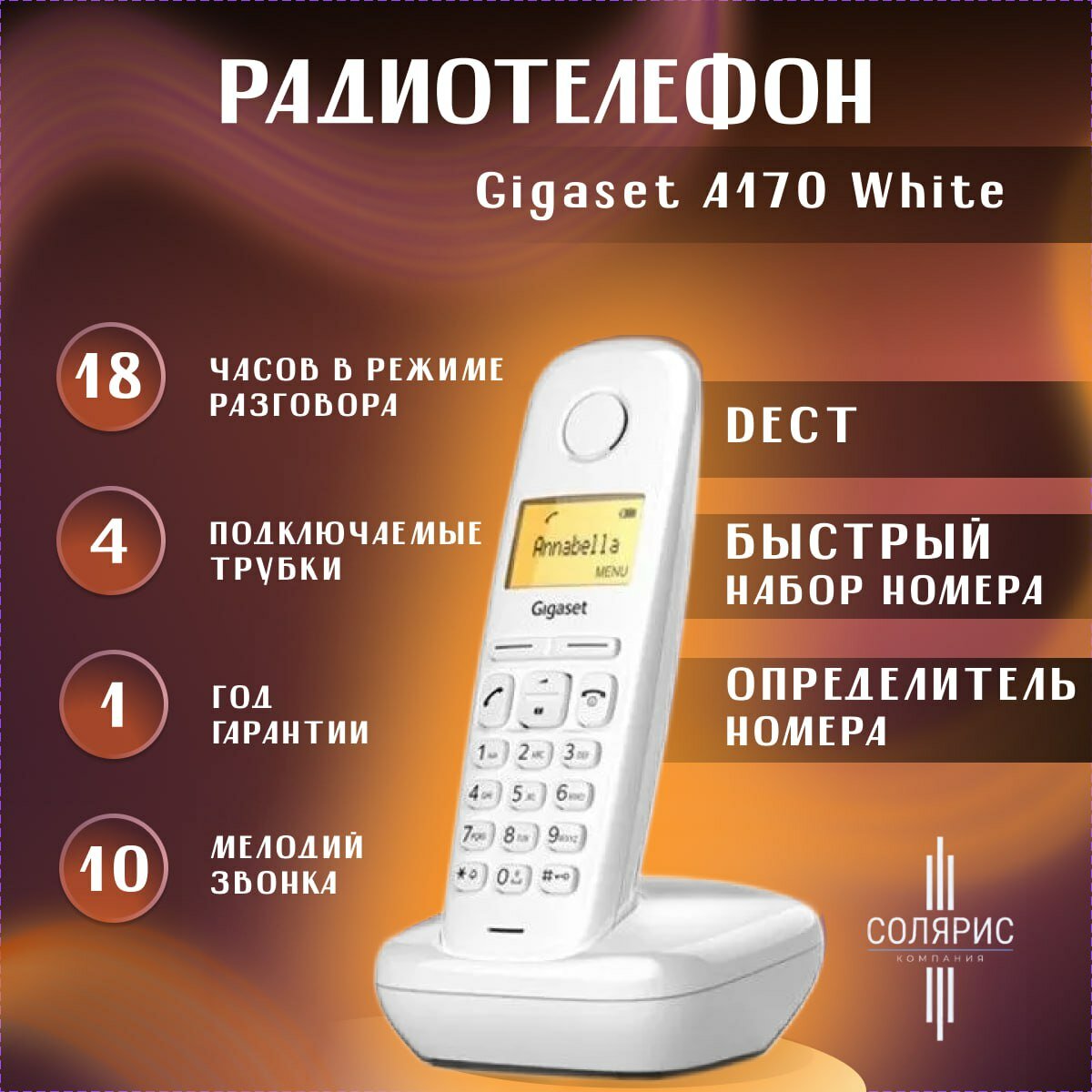 Радиотелефон DECT Gigaset A170, АОН, Caller ID, ускоренный набор, 50 номеров, ECO, белый