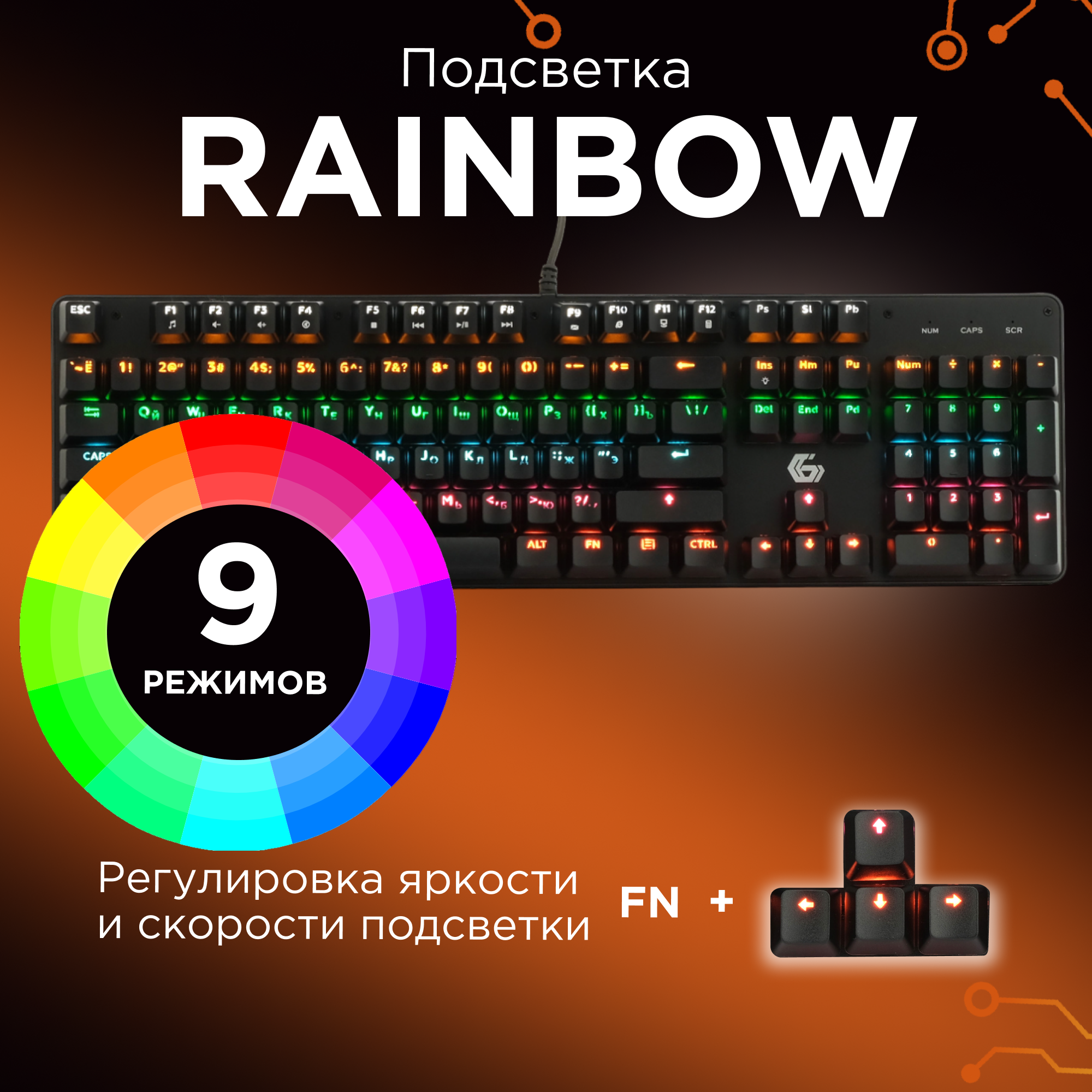 Механическая проводная клавиатура Gembird черная 104 клавиши с подсветкой Rainbow кабель 1.5 метра KB-G530L