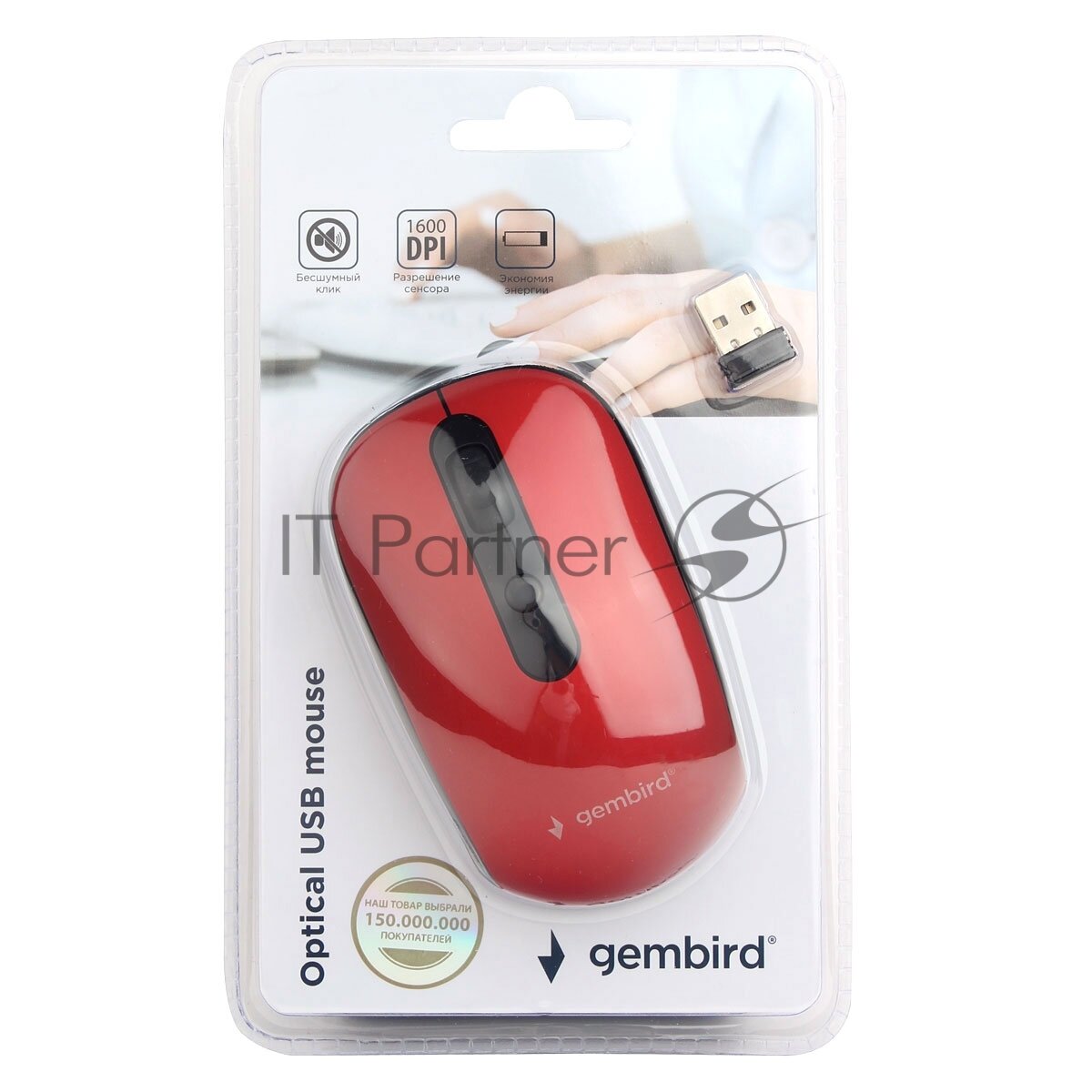 Мышь компьютерная Gembird MUSW-355-R, WLS, красный, 3кн.+колесо, 1600DPI, 1814739