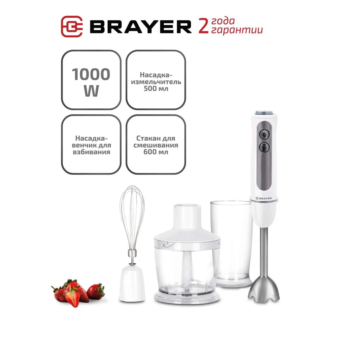 Блендер погружной BRAYER BR1248, 1000 Вт, 0.6/0.5 л, 5 скоростей, белый
