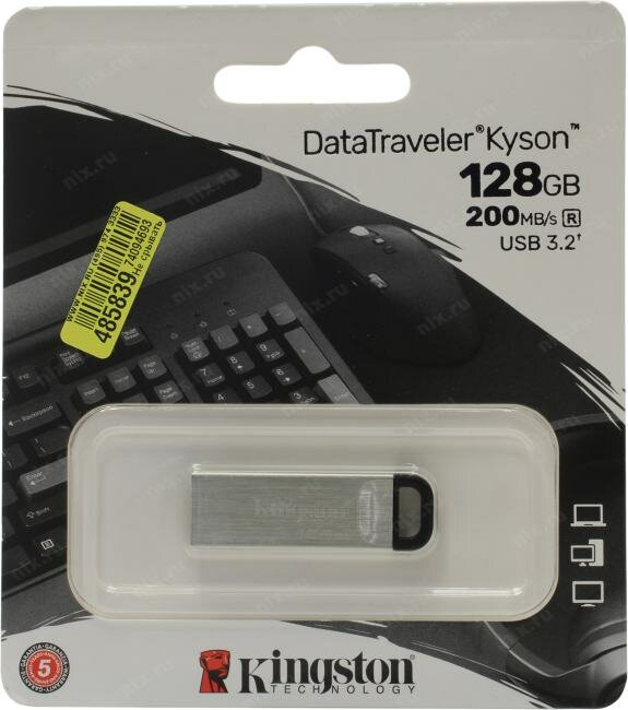 Флешка Kingston DataTraveler Kyson 128 ГБ, 1 шт., серебристый (DTKN/128GB)