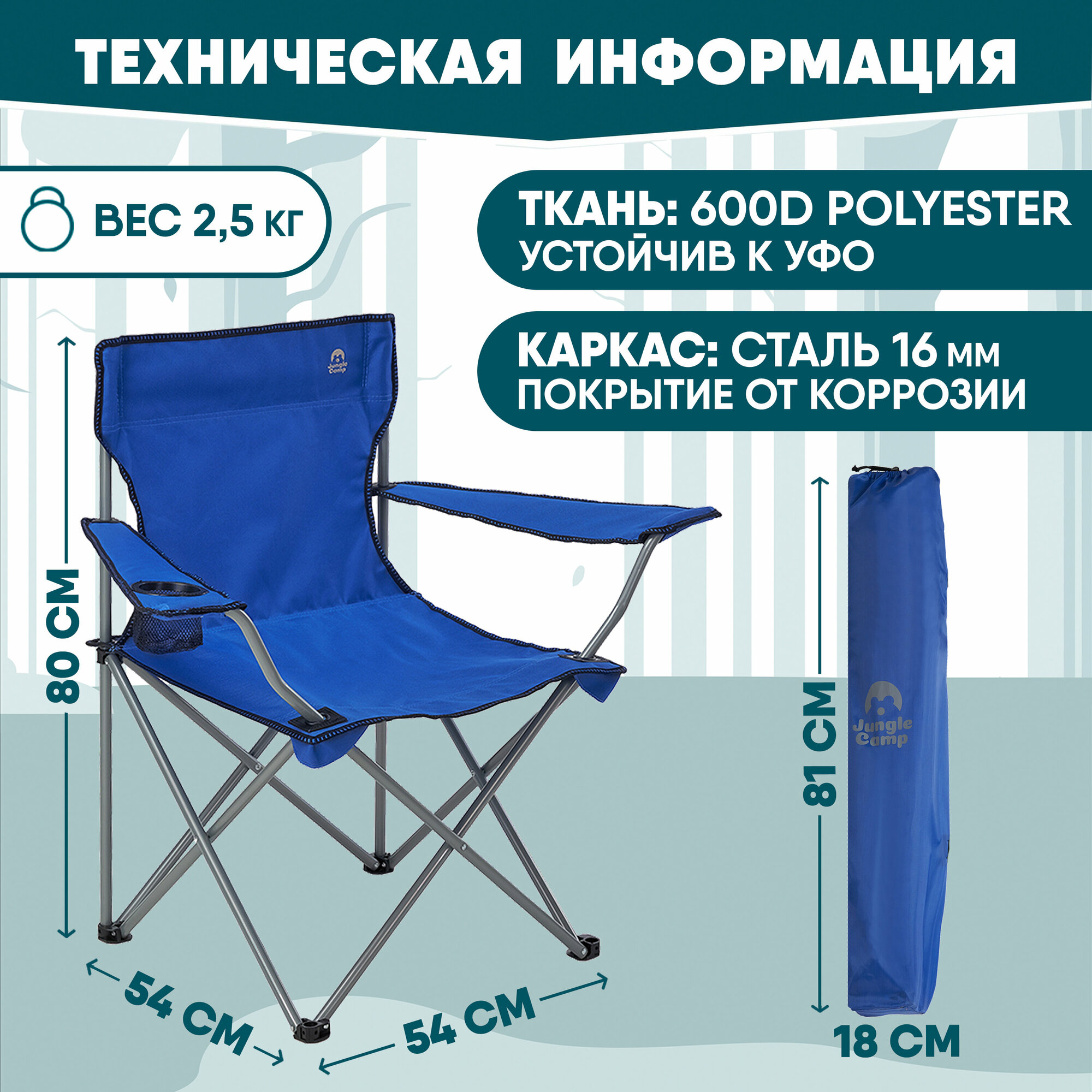 Кресло складное JUNGLE CAMP Ranger Blue, кемпинговое, 54х54х80см