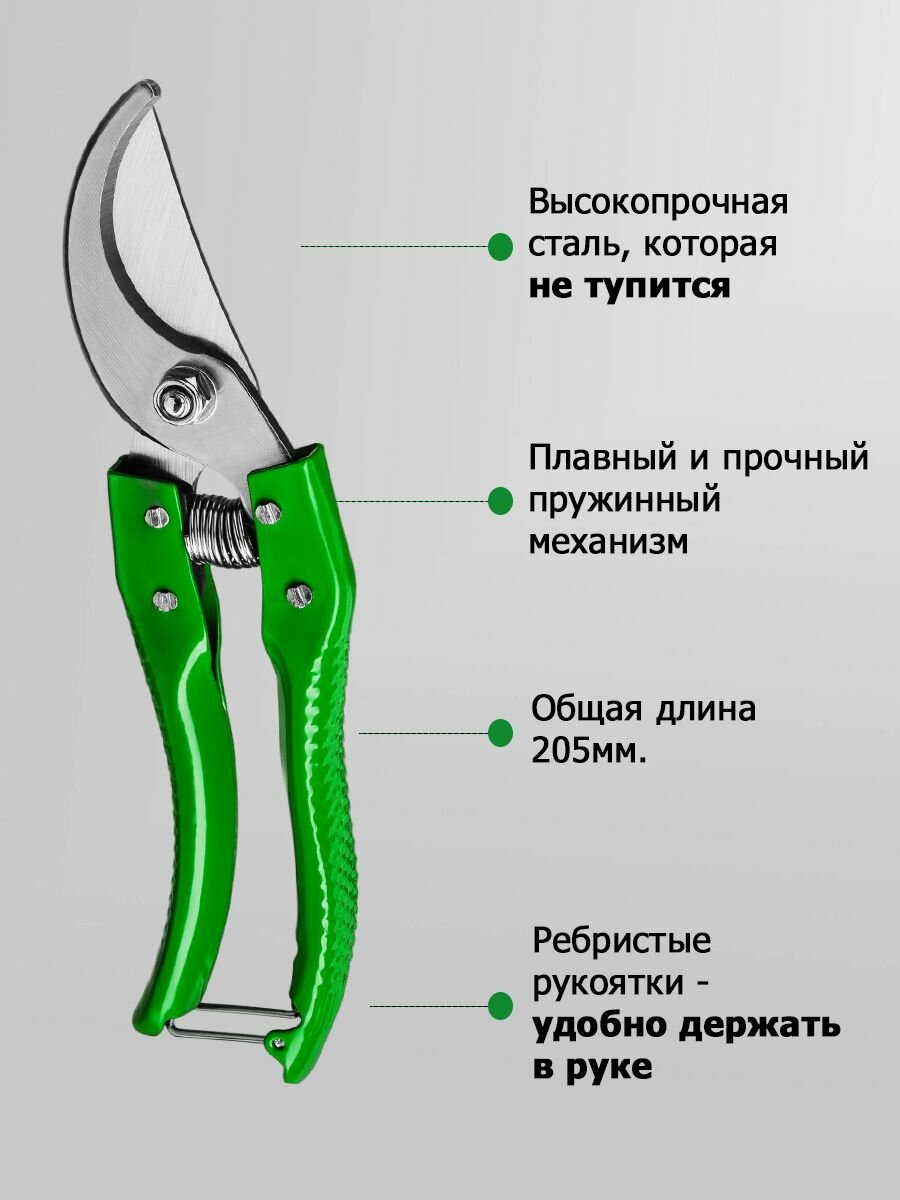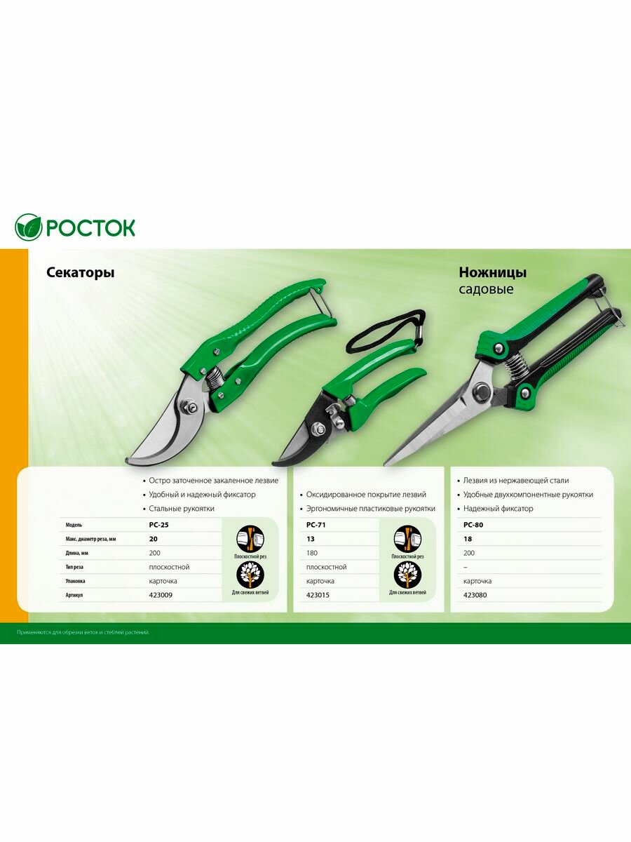 Купить Росток PC-25, 200 мм, углеродистая сталь, закаленные лезвия, стальные эргономичные рукоятки, плоскостной секатор (423009)