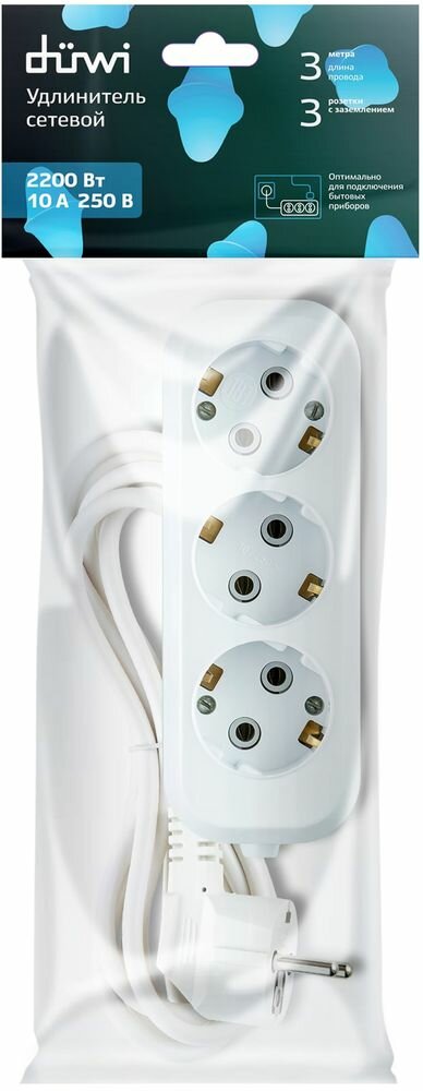 TDM удлинитель ПВС 3х1 3 роз. 3 м 16А земля белый У03 (20!) SQ1303-0001