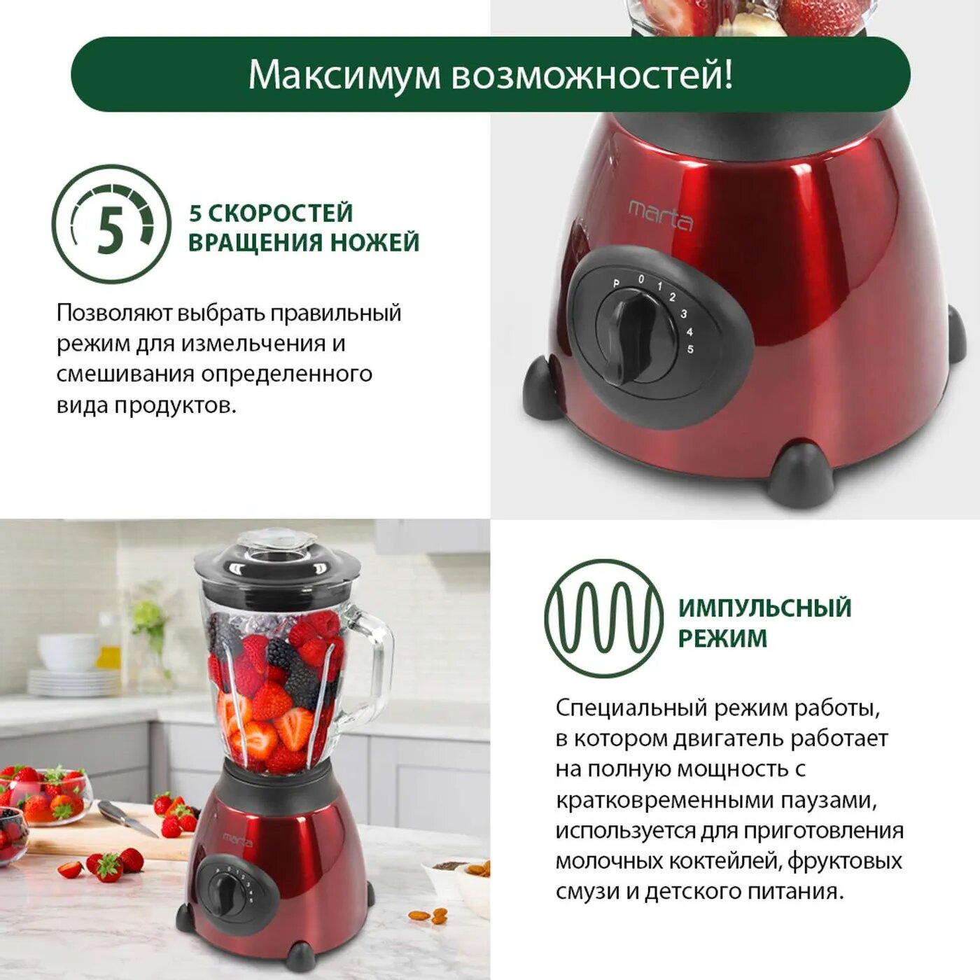 СохранитьБлендер стационарный MARTA MT-1591 красный/черный интересное: