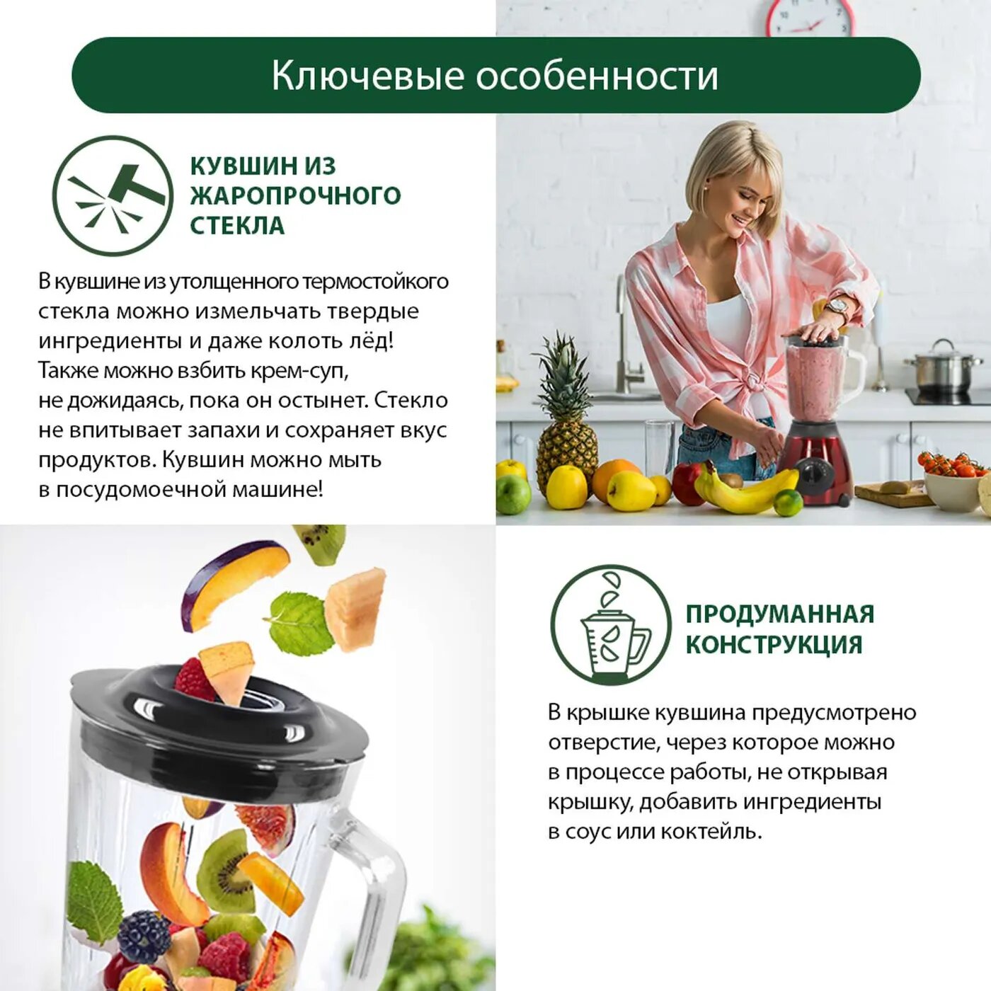 | Плюсы: | Дизайн, 5 скоростей работы, большая стеклянная ёмкость |