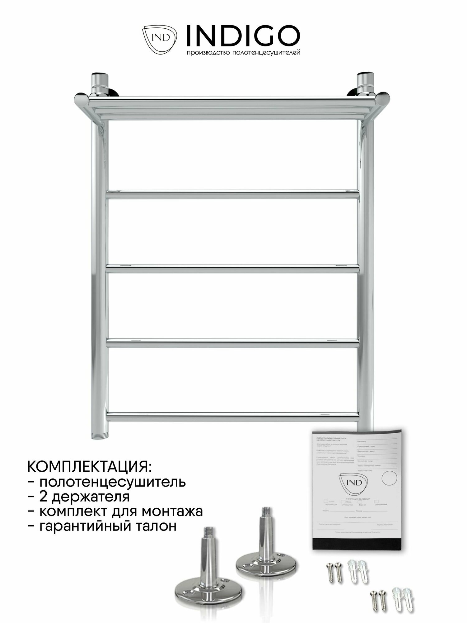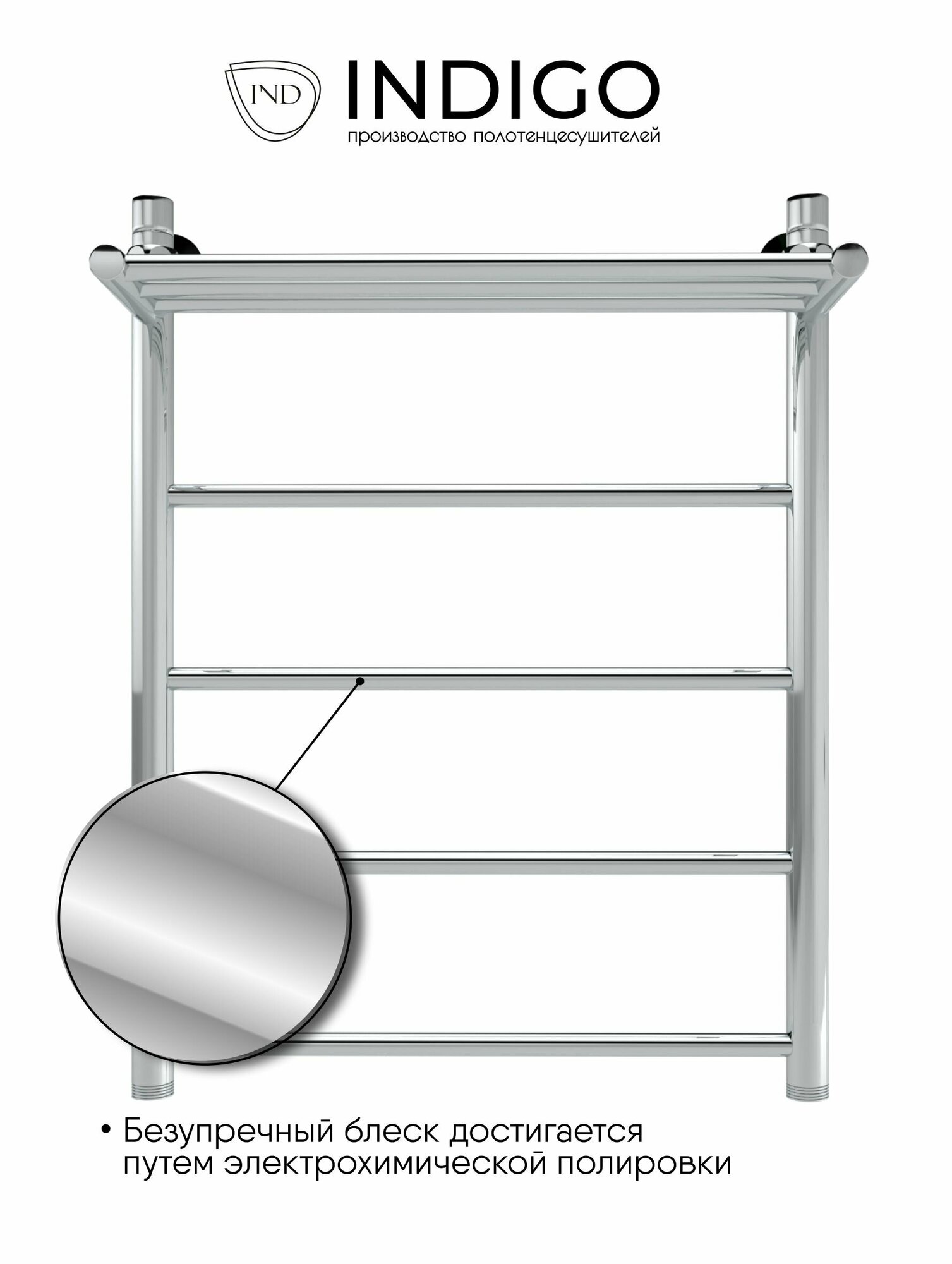 Водяной полотенцесушитель Indigo Полотенцесушитель Indigo Line с полкой (1 - 3/4 - 1/2) 70/50
