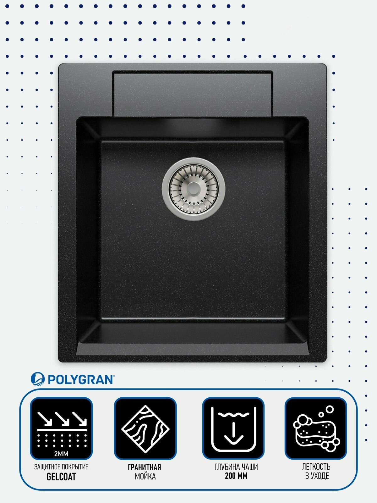 Polygran ARGO-460, мойка, мрамор, черный 16