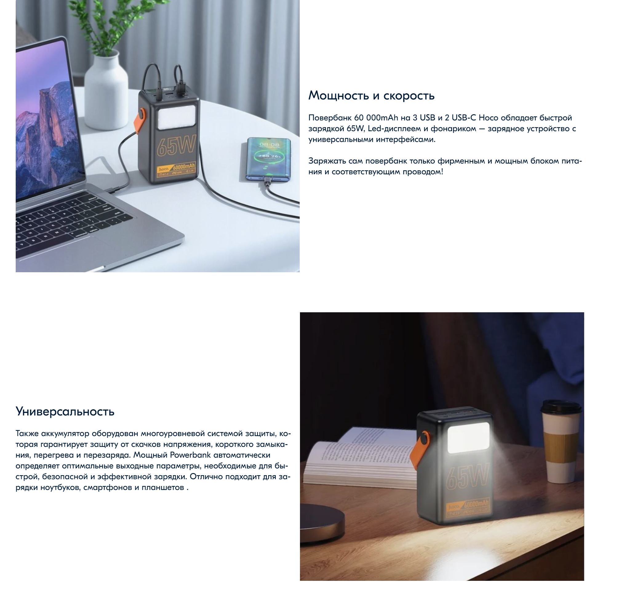 СохранитьВнешний аккумулятор Hoco J110A 60000mAh, черный интересное: