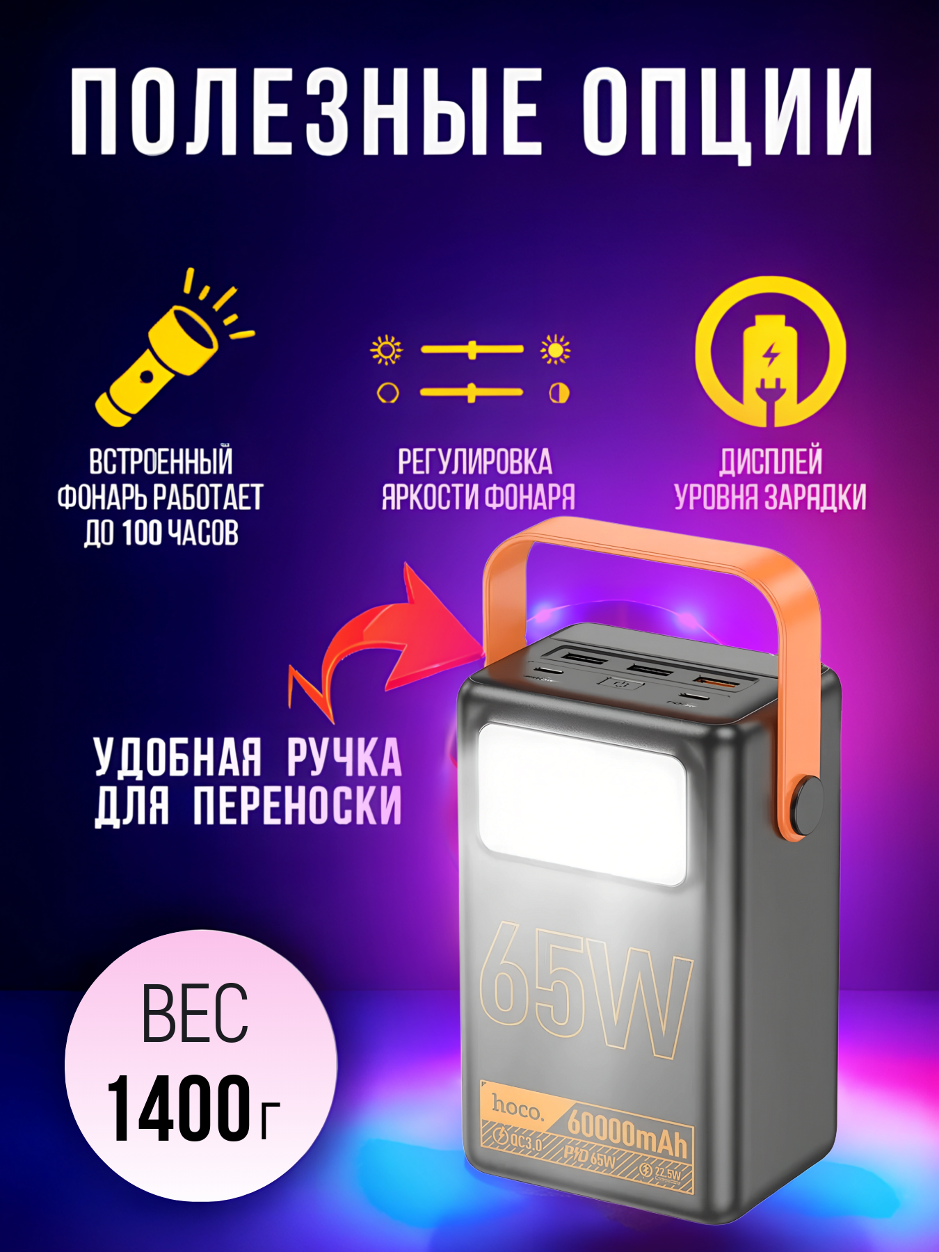 Повербанк Hoco J110A 60000mAh 65W с быстрой зарядкой, черный