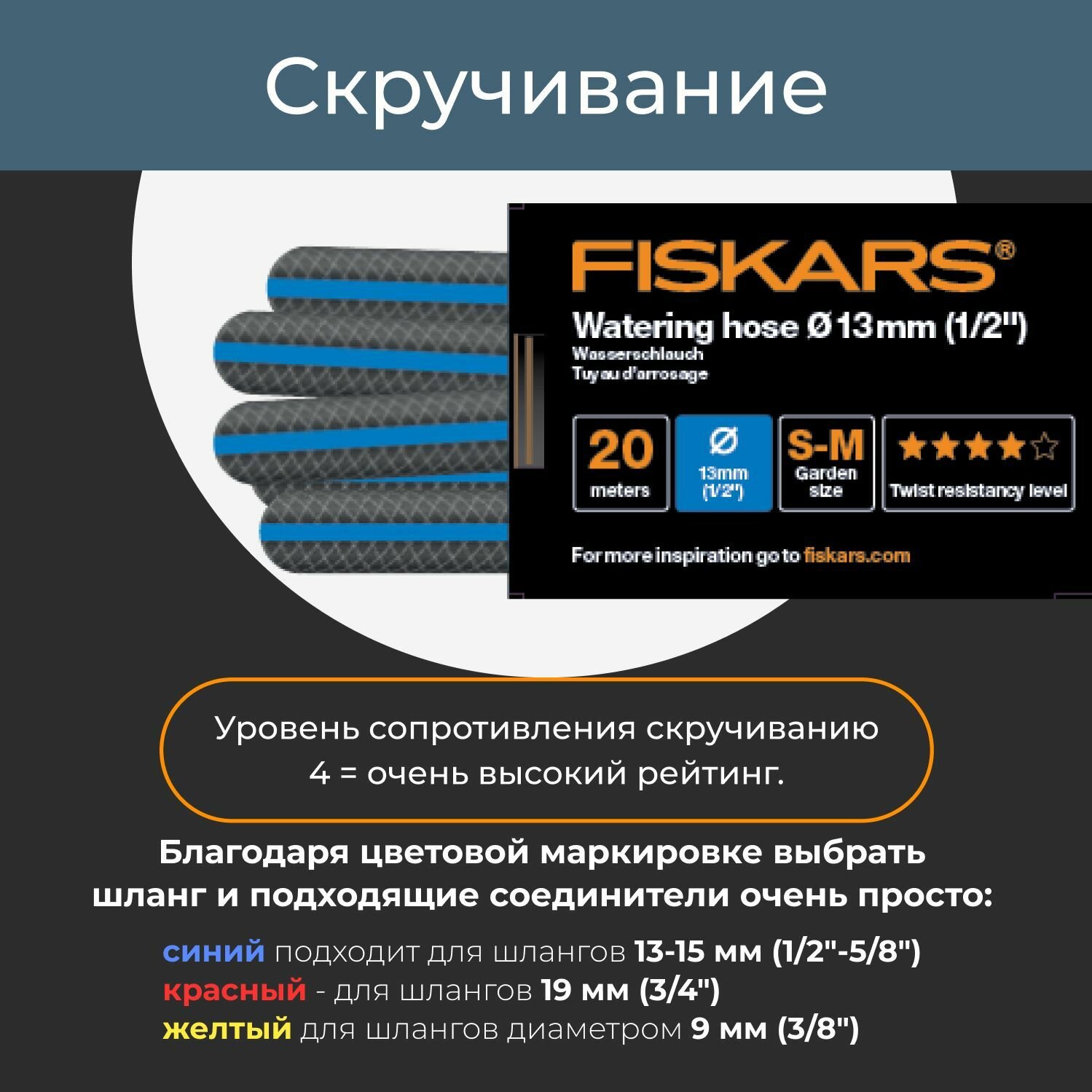 Шланг поливочный FISKARS Q4 1/2" 20 м (1027104) интересное: