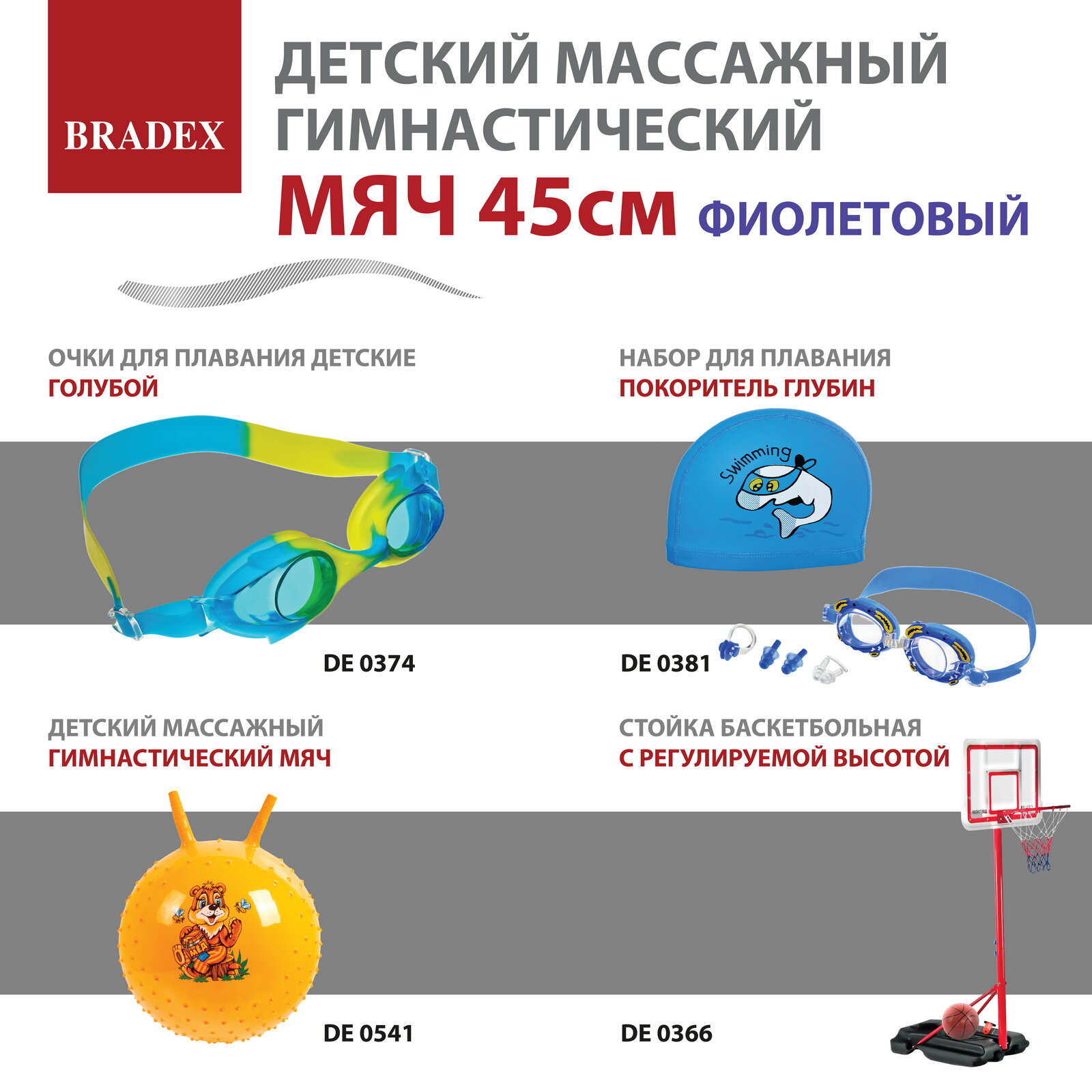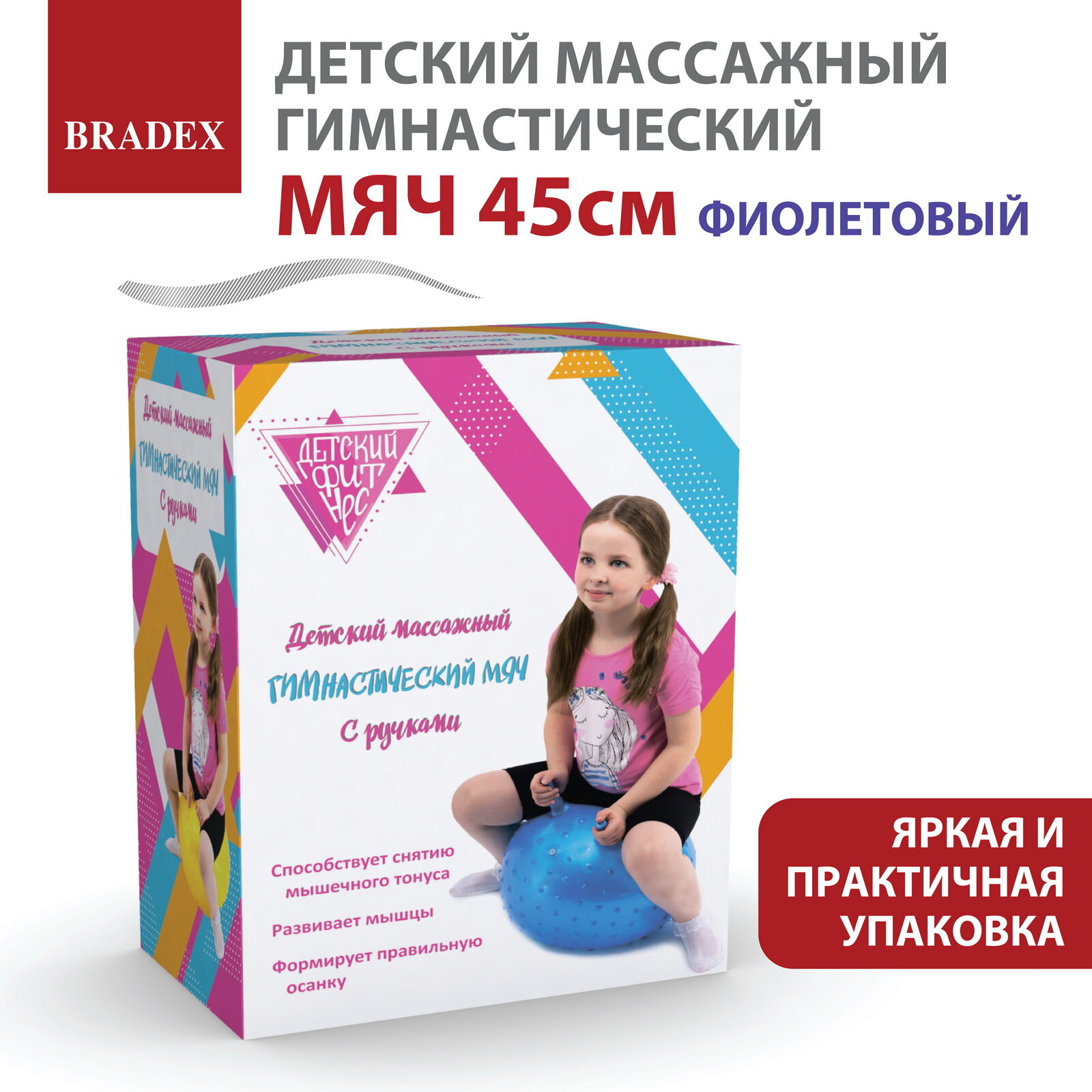 Детский массажный гимнастический мяч, фиолетовый DE 0537 BRADEX