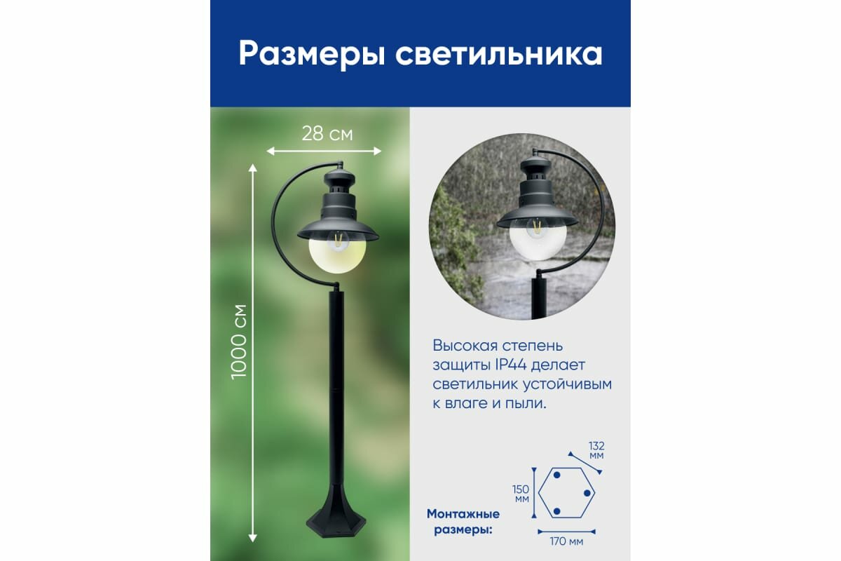 Светильник садово-парковый Feron PL576 столб 60W 230V E27 черный, 11599