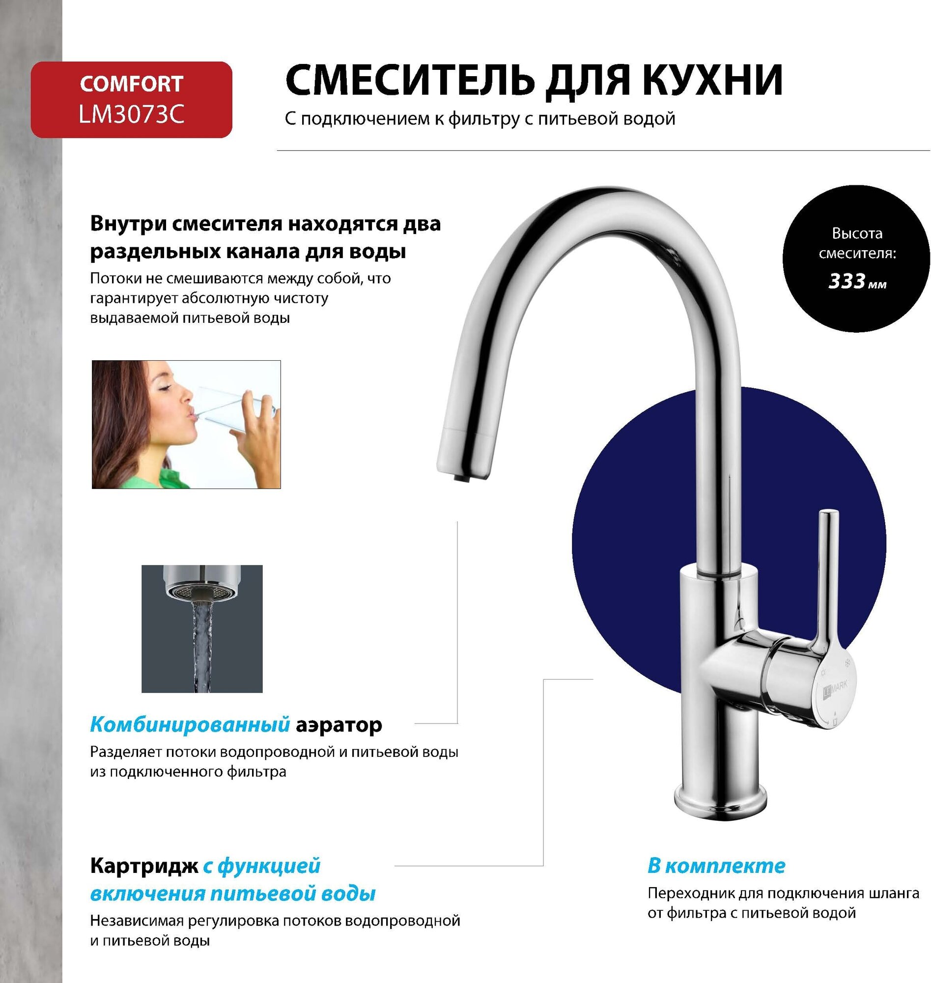 Смеситель для кухни LEMARK Comfort (LM3073C), с подключением к фильтру с питьевой водой
