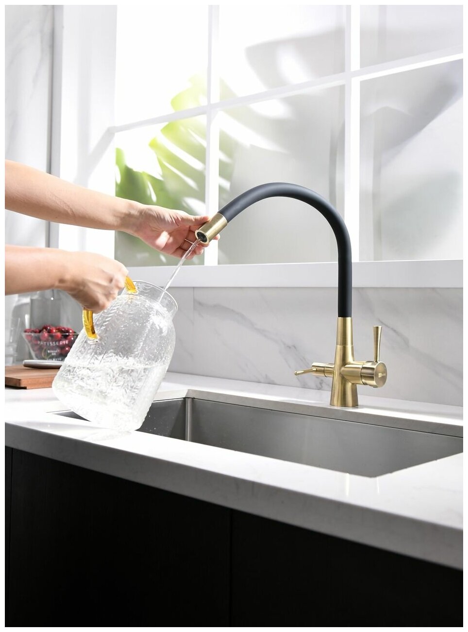 Смеситель для кухни Lemark COMFORT LM3073 с подключением к фильтру питьевой воды, цвет: шампань
